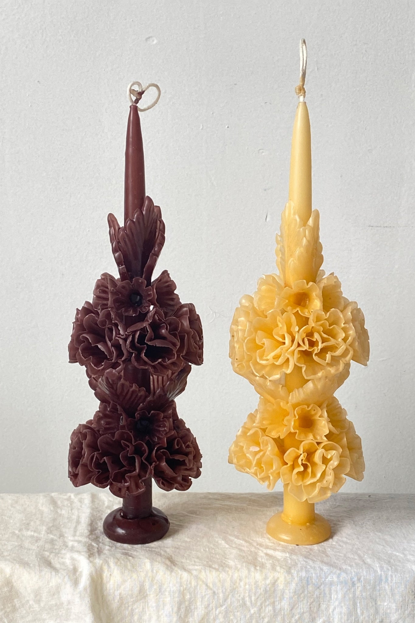 Made by a family of artisans in Mexico City using local wax and dyes. Due to the organic nature of the candle, colour and shape may vary slightly.