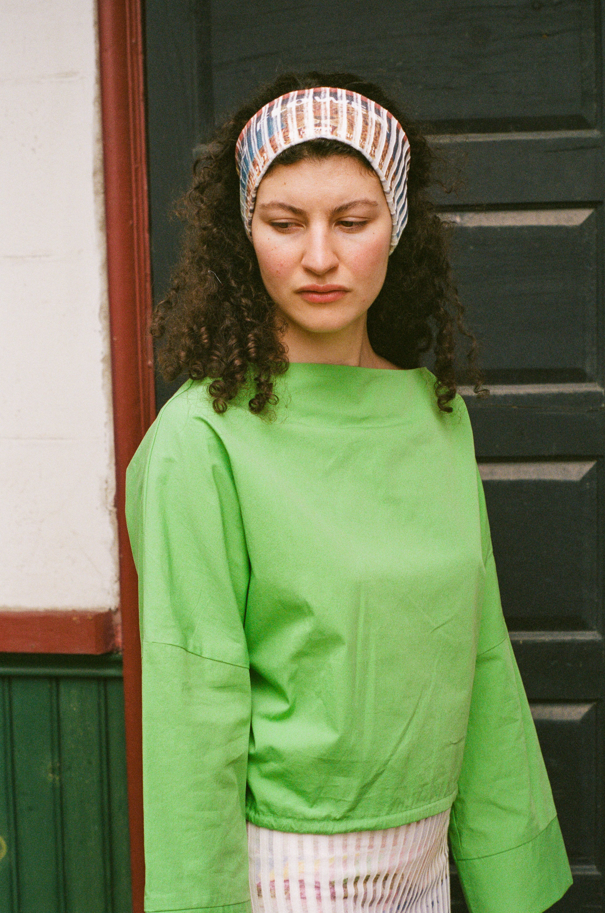 Gillian wears with the Cuff Top in Bud and Giu Giu x 100% Silk Nonna Tube Skirt.