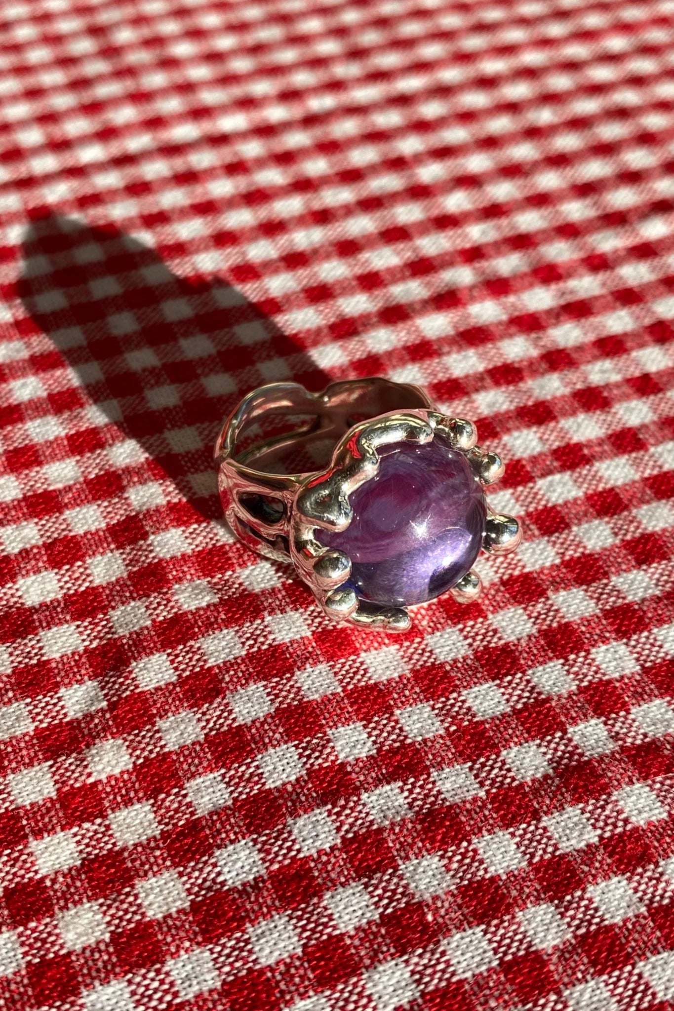 sterling silver textured ring with large purple stone