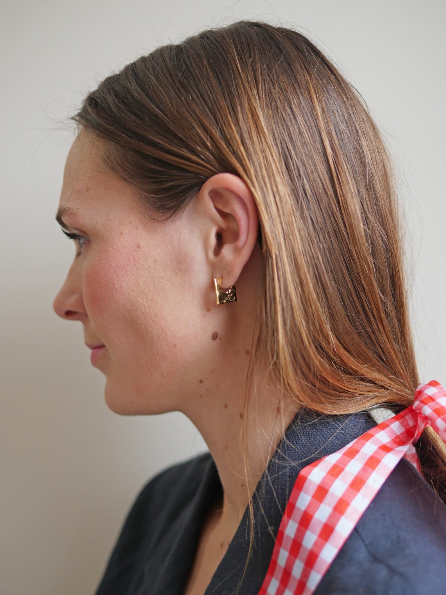 Every day studs with an organic, hand-cut finish. Comes in sterling silver and 22k gold electroplated over sterling silver.