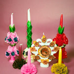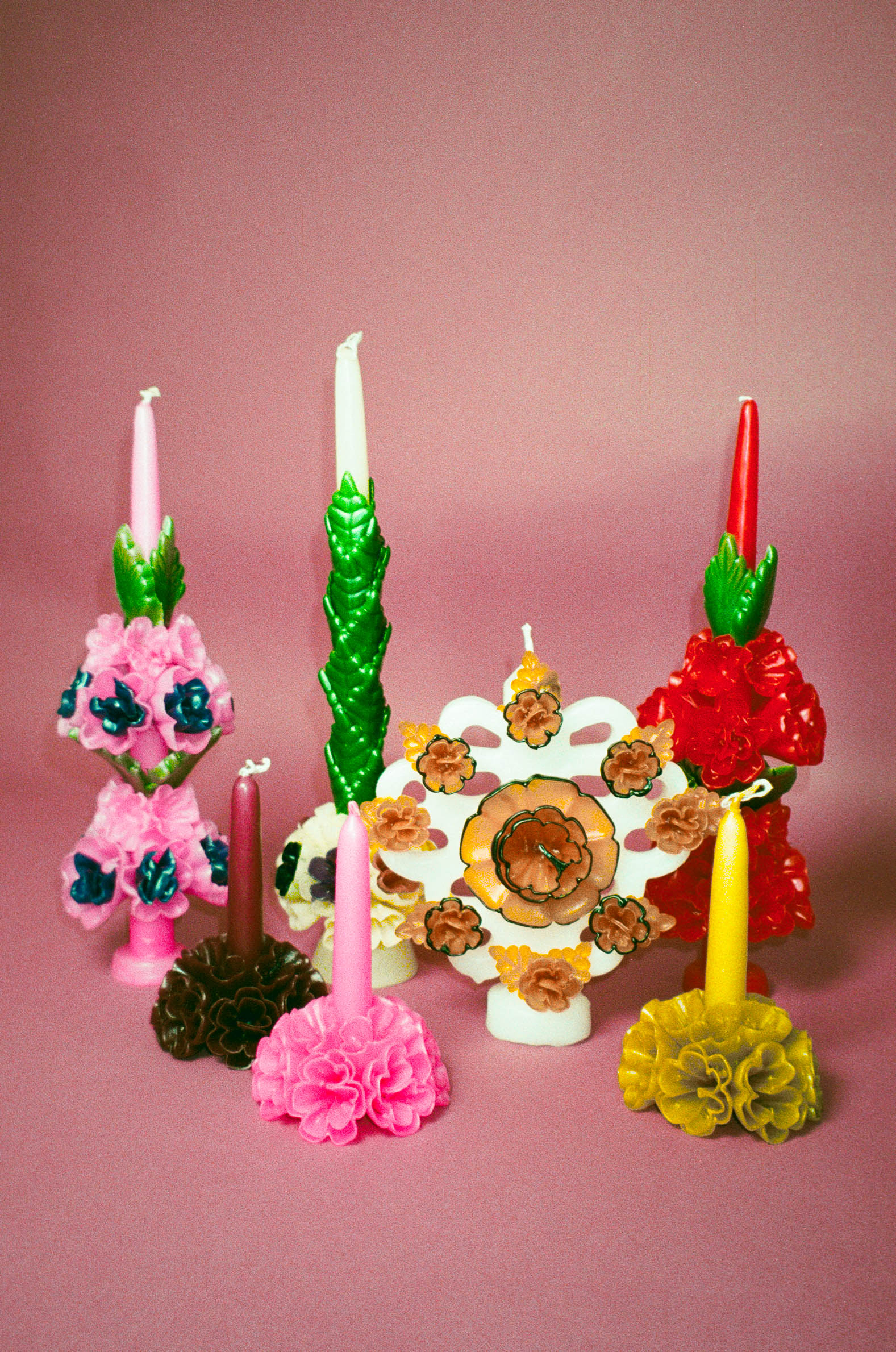 Made by a family of artisans in Mexico City using local wax and dyes. Due to the organic nature of the candle, colour and shape may vary slightly.