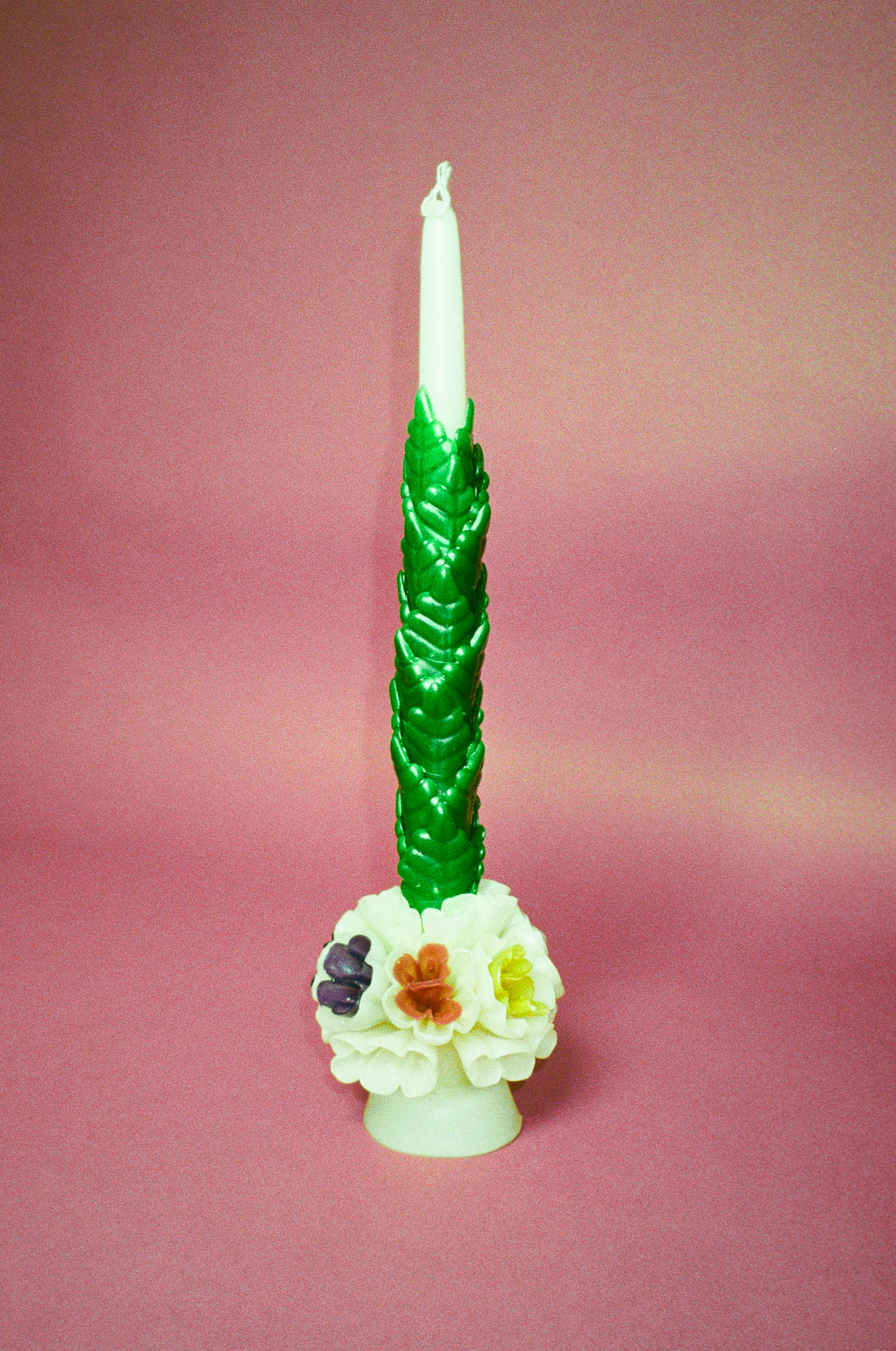 *Please note* These candles are delicate by nature and we make every effort to ensure they arrive to you in perfect condition. However, as each flower is added by hand there is a small chance one may come off during shipping. Fortunately they are easily re-attached with a bit of heat (ie. using a lighter the tip of a curling iron).