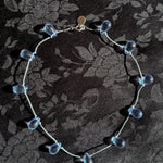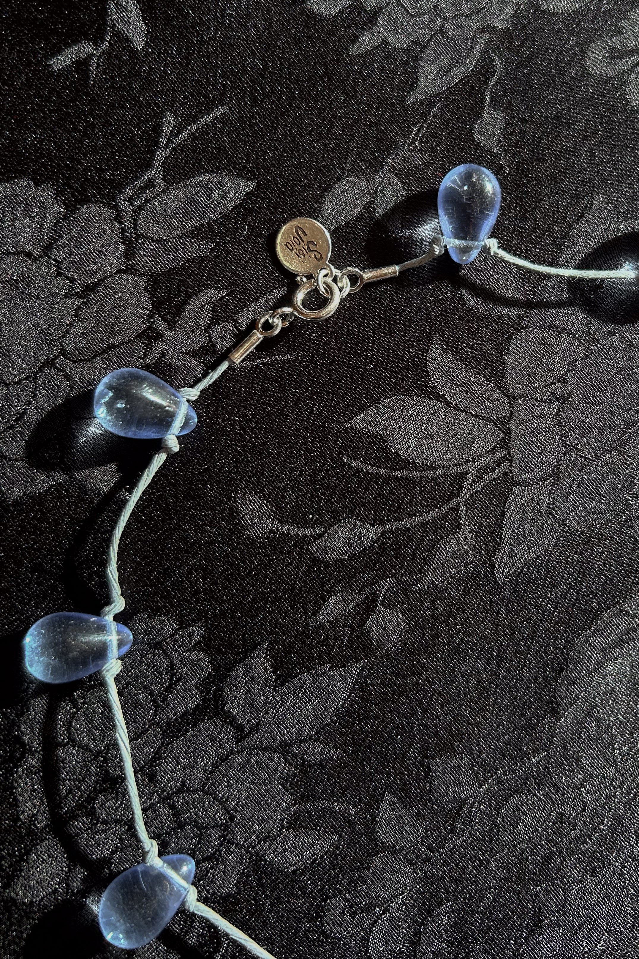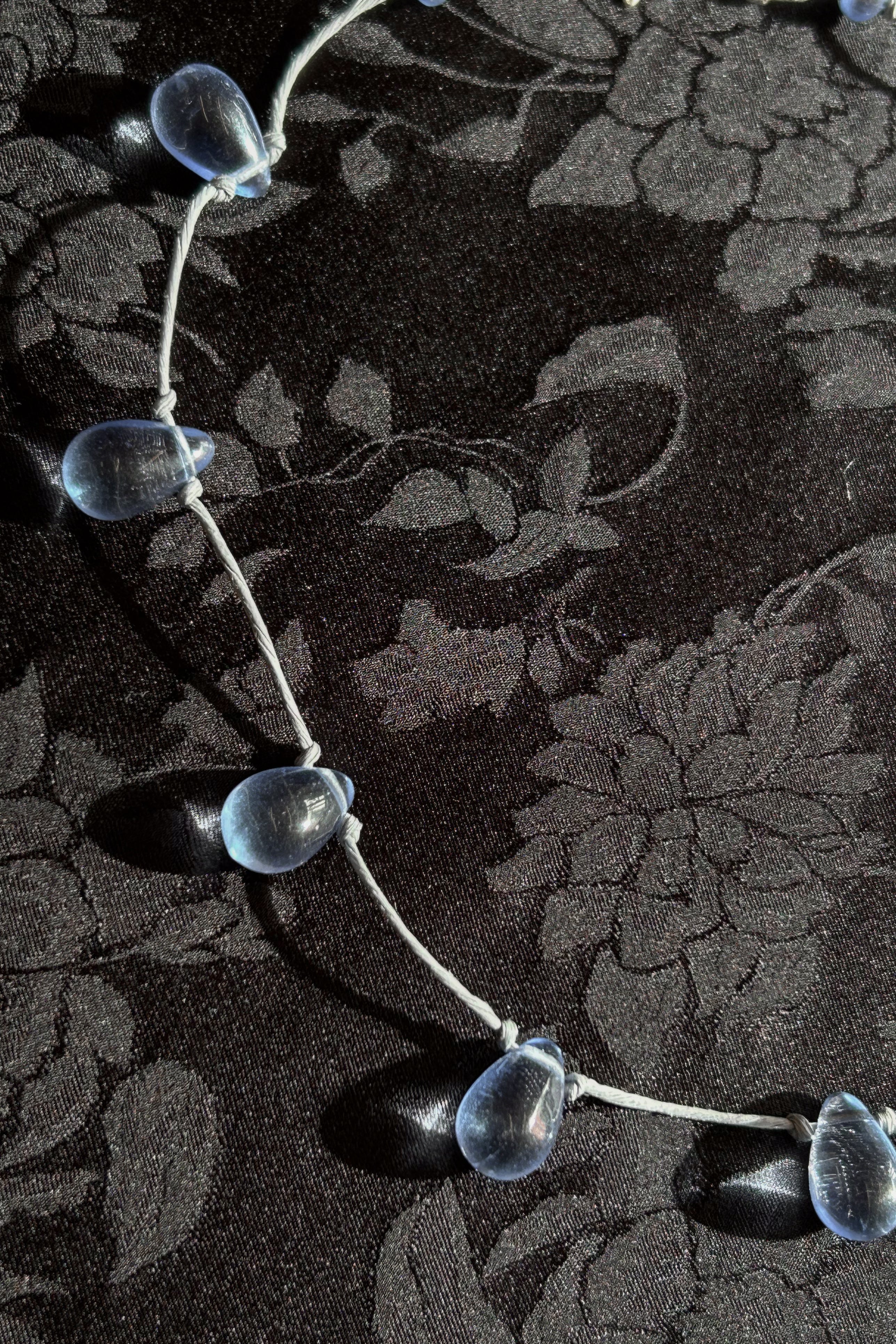 Handmade choker necklace made with pale blue vintage Czech glass beads strung onto a grey waxed cotton thread. Around 14" circumference. Sterling silver findings and clasp adorned with signature Sisi Joia tiny tag.