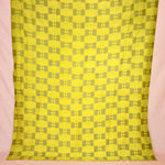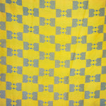 Large, beautiful yellow cloth with a repeating royal blue floating weft design.
