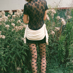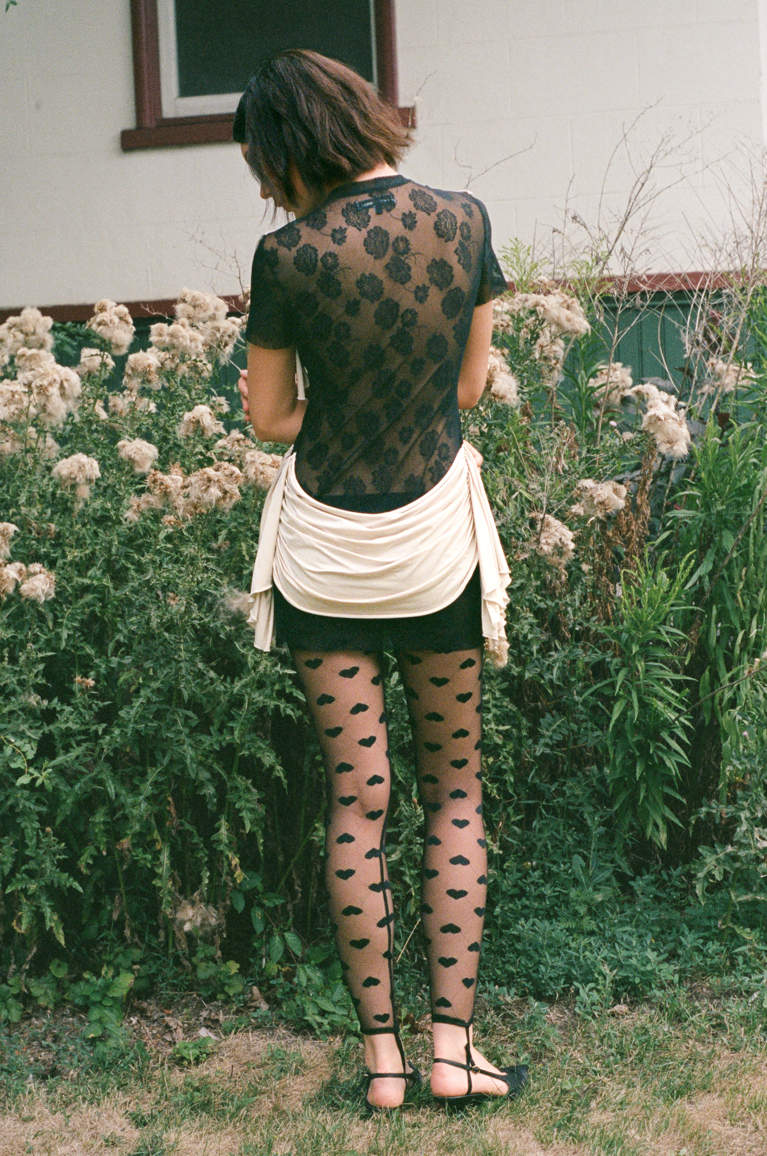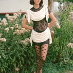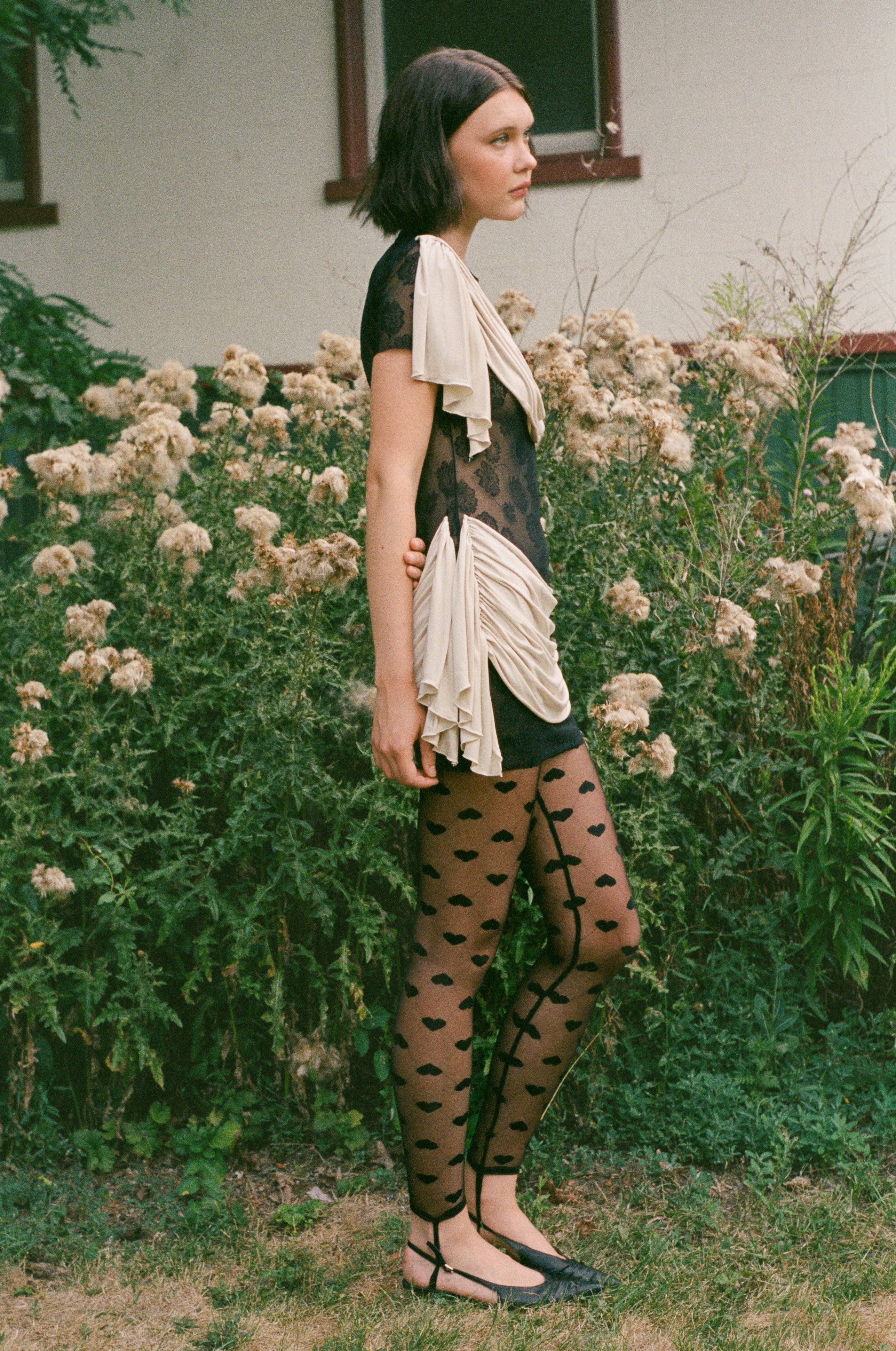 Material: 100% deadstock polyester lace, 100% lyocell drapes.