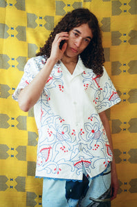 MADEIRA BUTTON UP SHIRT IN RED AND BLUE FLOWERS