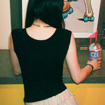 Scoop neck top with short cap sleeves in black, hitting at a hip-grazing length. Made from locally sourced high-end cotton spandex jersey that's lightly sanded for a subtle velvety hand feel.
