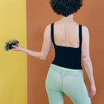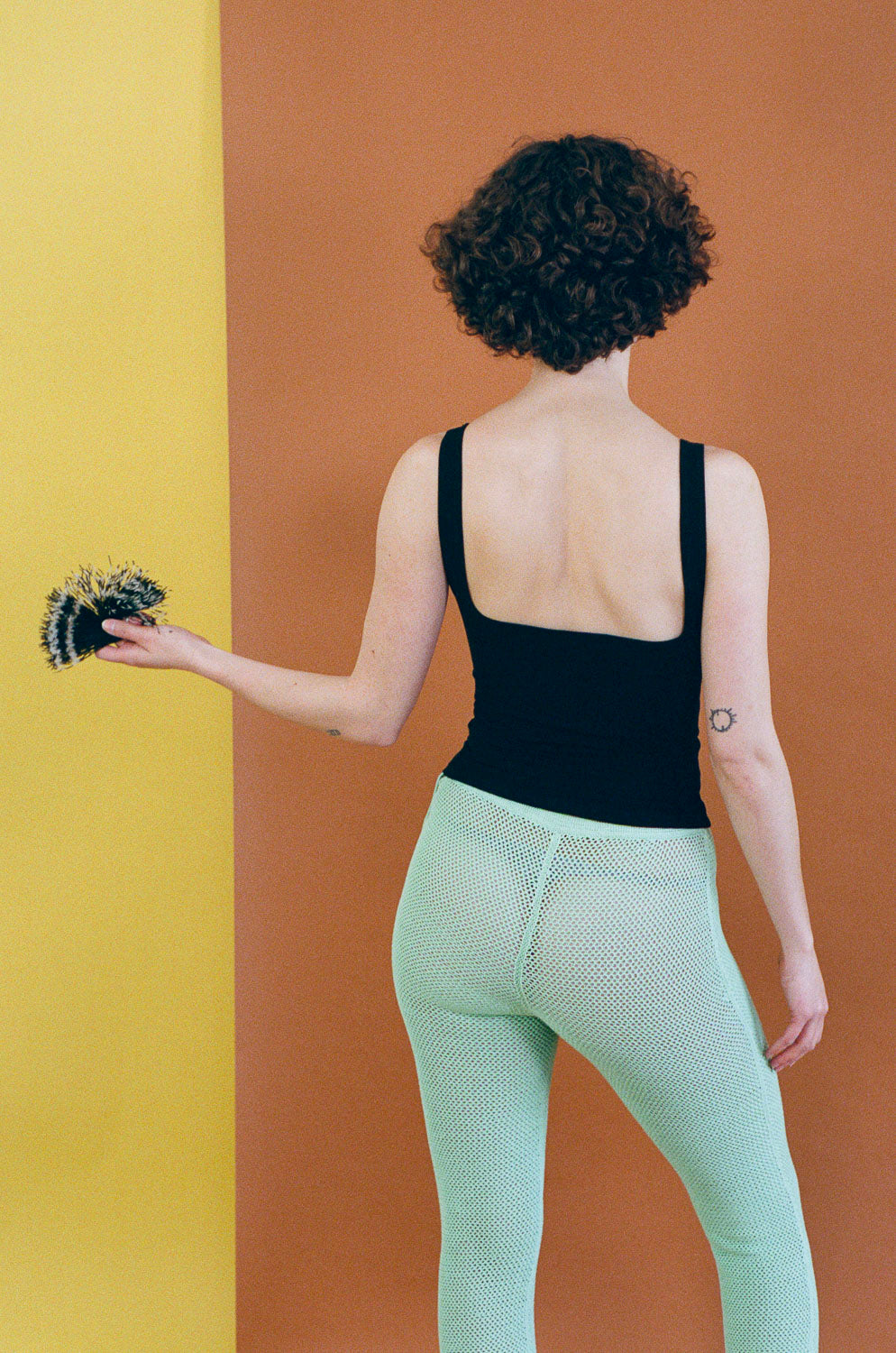 Classic stretch thick strap tank top with a perfectly scooped, slightly squared neckline, hitting at a hip-grazing length. Featured in black. Made from locally sourced, high-end cotton spandex jersey that's lightly sanded for a plush feel.