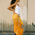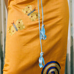 Material: 100% handwoven cotton with voile lining, silk rouleau straps and brass amulets.