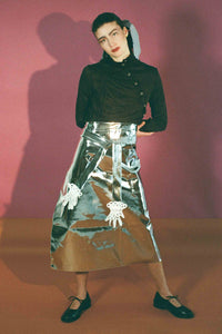APRON WITH LACE APPLIQUÉ, HANDS IN METALLIC SILVER
