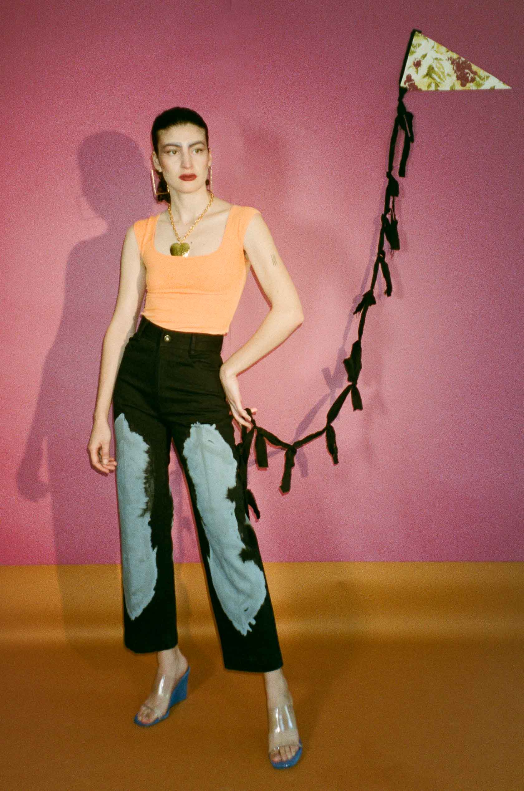 Spa Boy debut original denim collection. After much wearer research and pattern drafting, Spa Boy has developed 3 perfect fitting pairs of jeans. Ultra baggy, or fitted in just the right spots, each pair is accentuated through layers of sometimes acidic, sometimes grungy coats of dye. No two pairs alike.