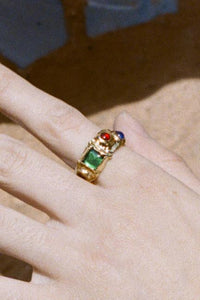 SUEDE RING WITH GREEN, BLUE AND RED GLASS