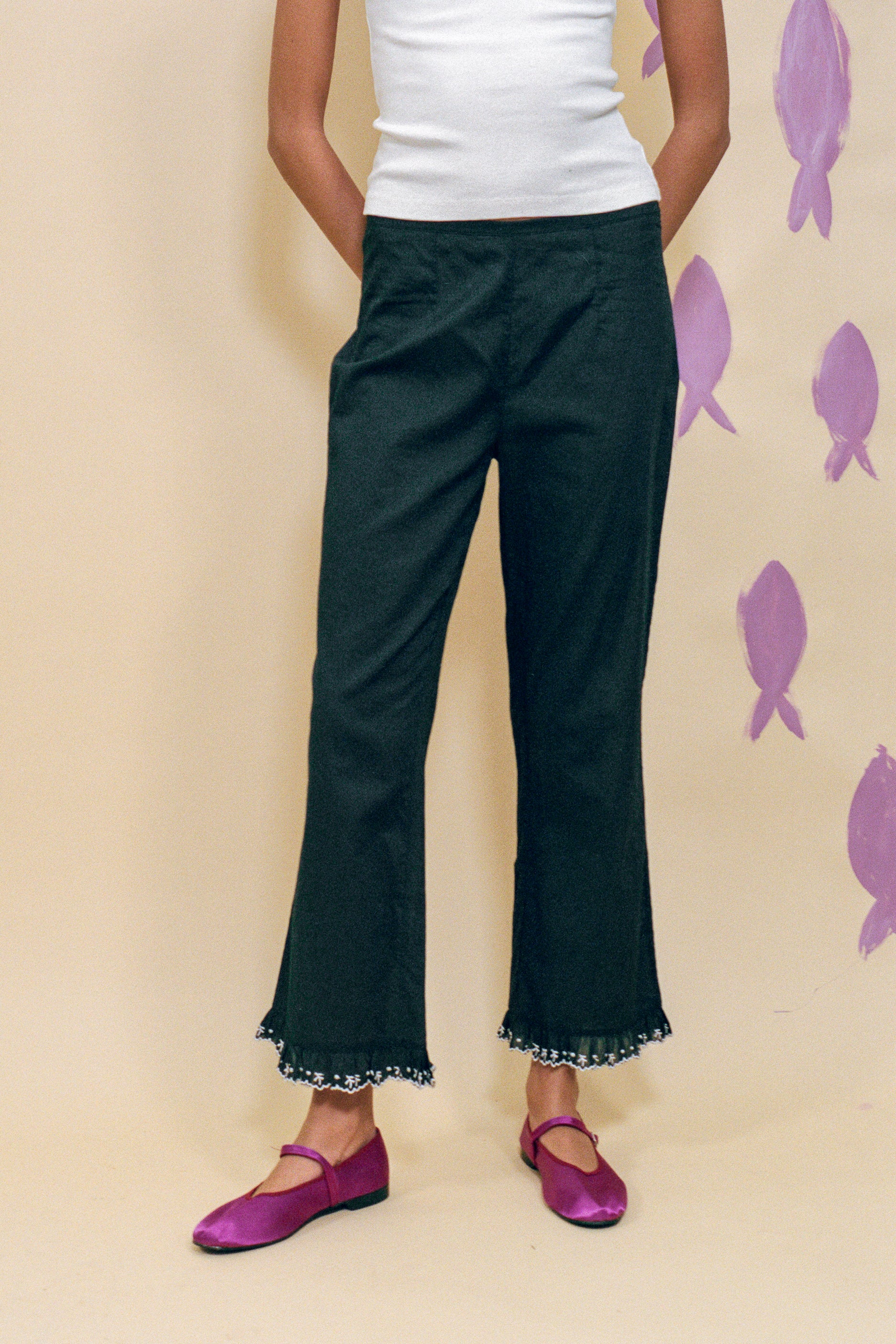 FRINGE MIDI SKIRT IN DARK GREEN STRIPE