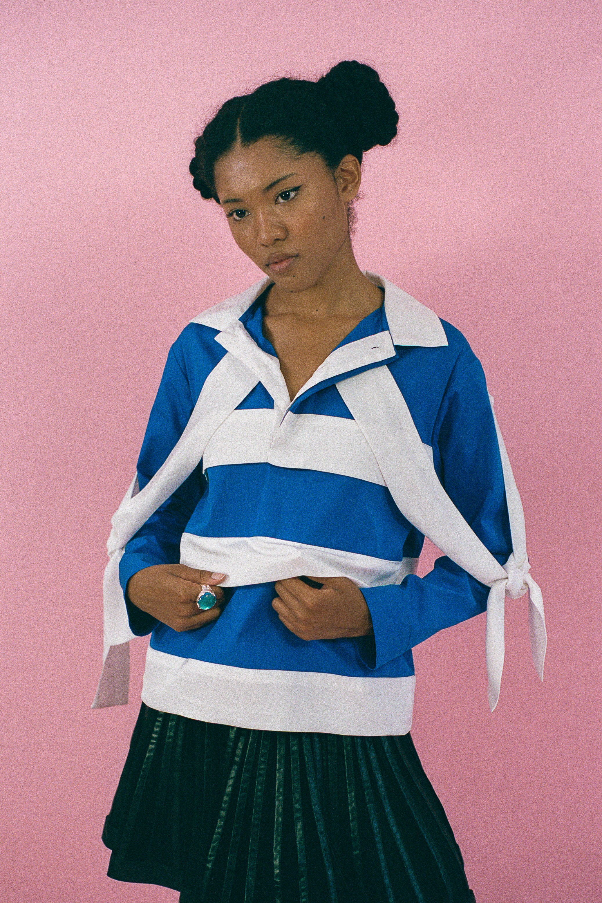 POLO STRIPE TOP IN BLUE AND WHITE