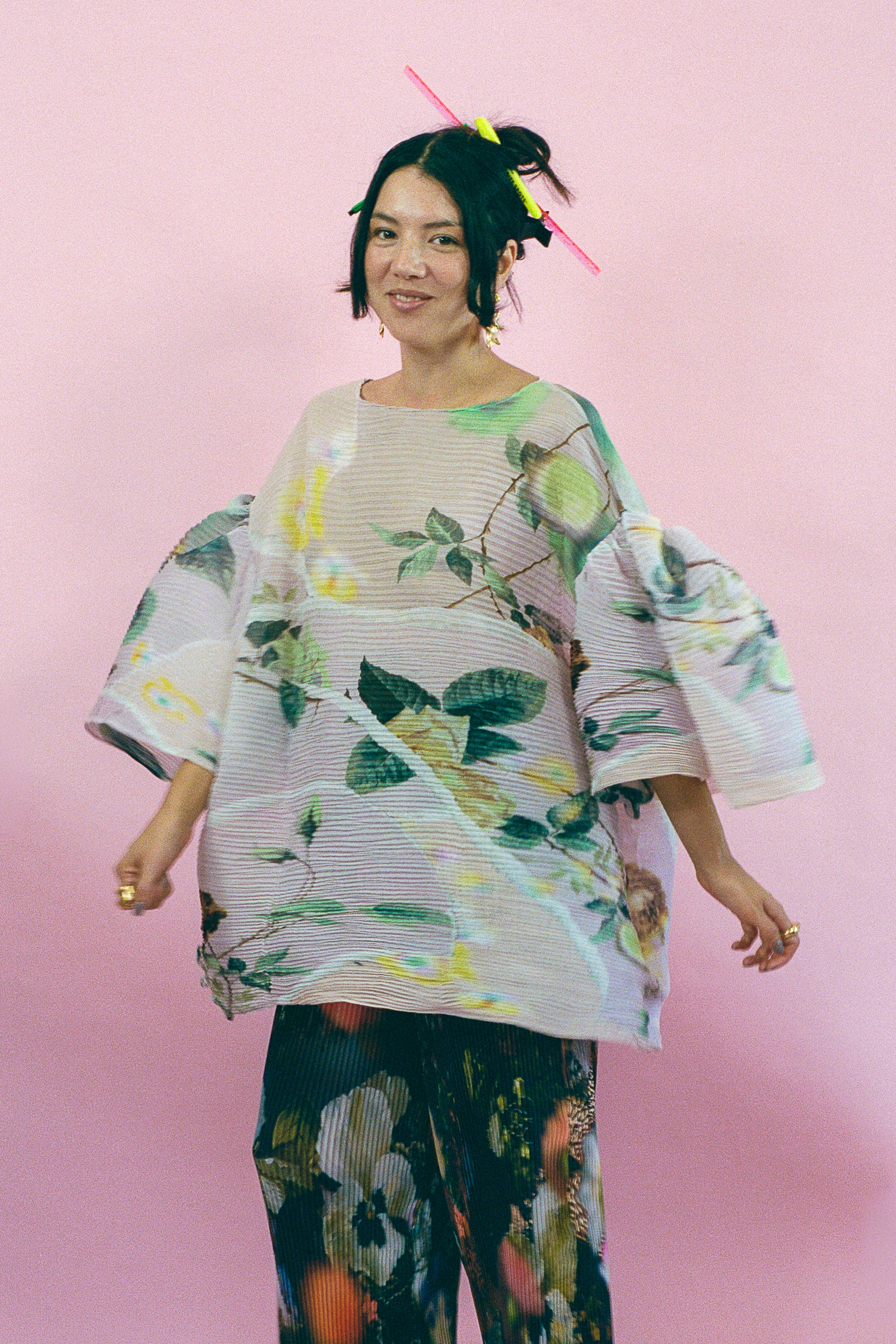 FARAH TOP IN PINK AND YELLOW