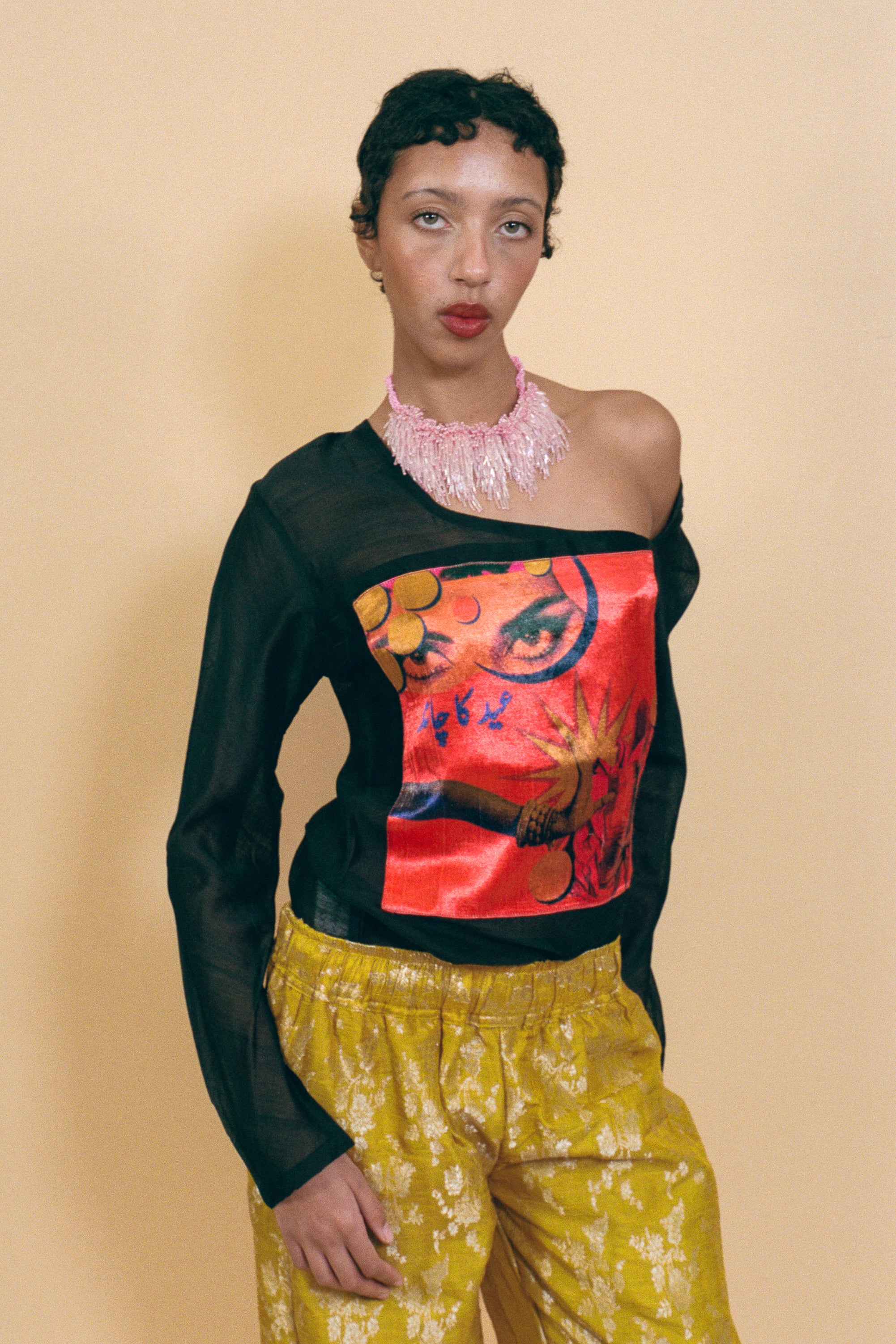 HAND PRINTED 'ONCE IN A BLUE MOON' TOP