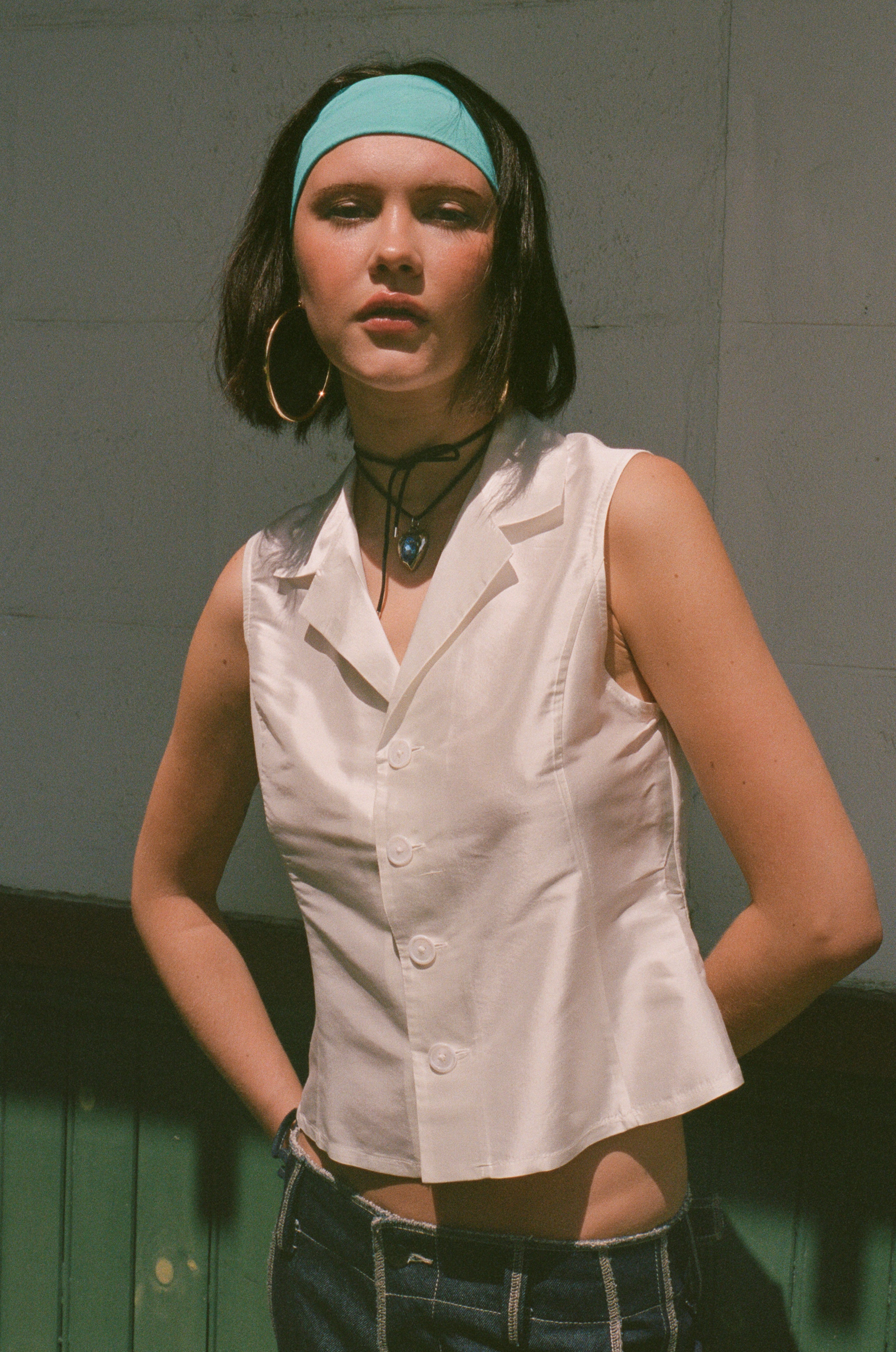 Valerie is 5'10 and a size extra small, and wears size small with the Stretch Headband in Aqua and Onsen Sandal in Fete.
