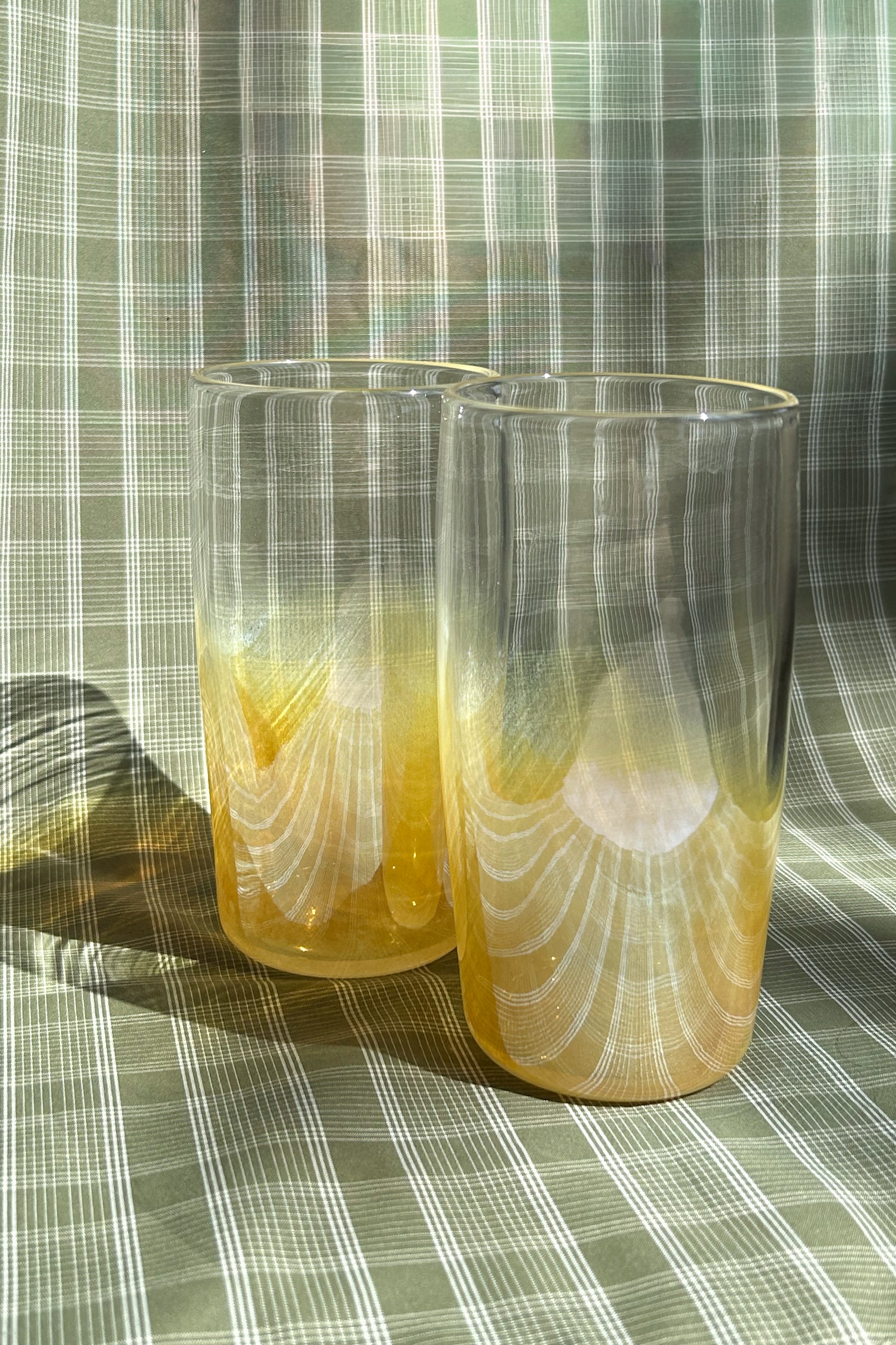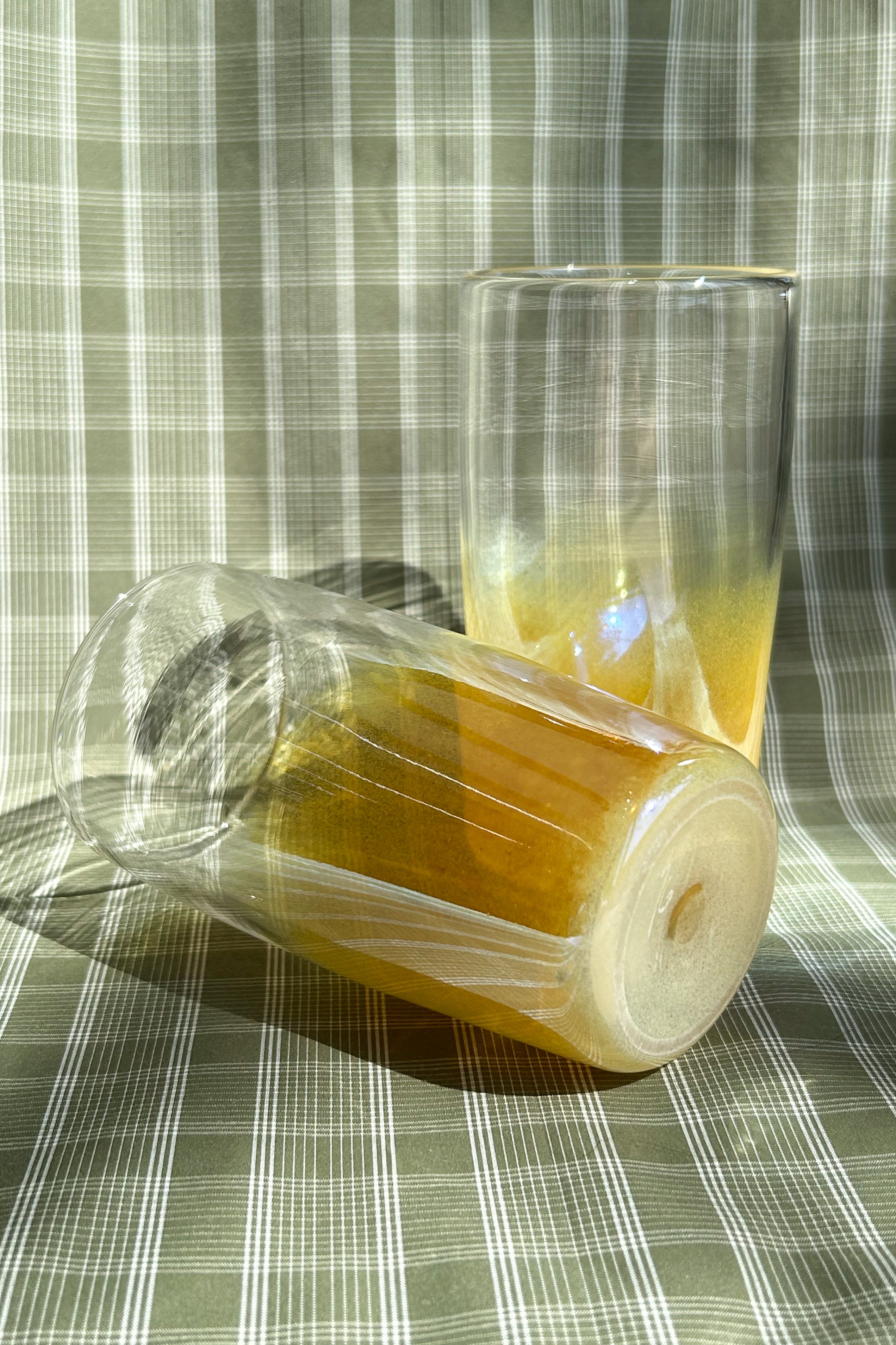 2 piece hand blown glass tumbler set or single. Each of Sirius Glassworks' pieces are completely unique, their work bears a sense of strength and sincerity. Swirling like a mirage, their work is highly coveted.