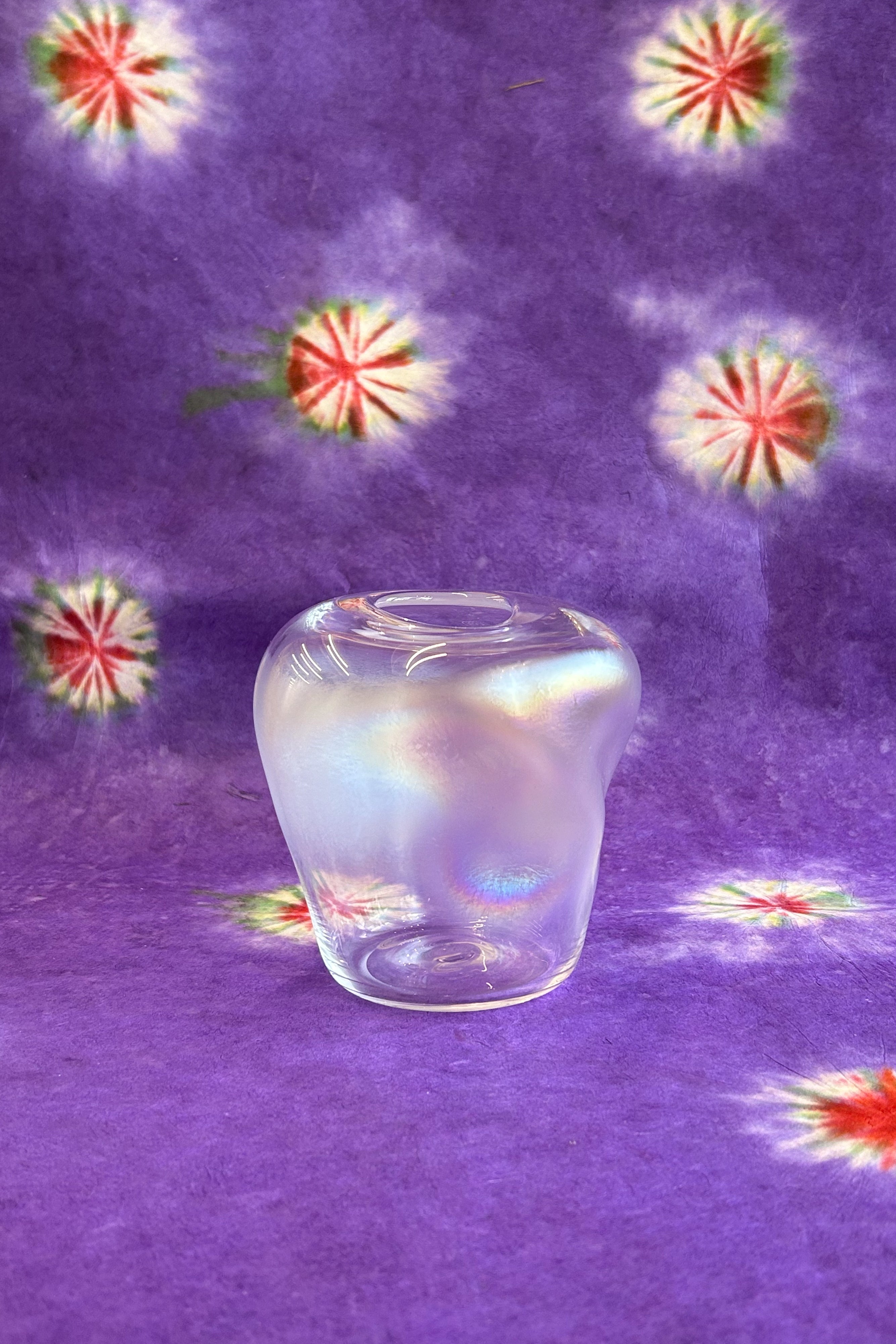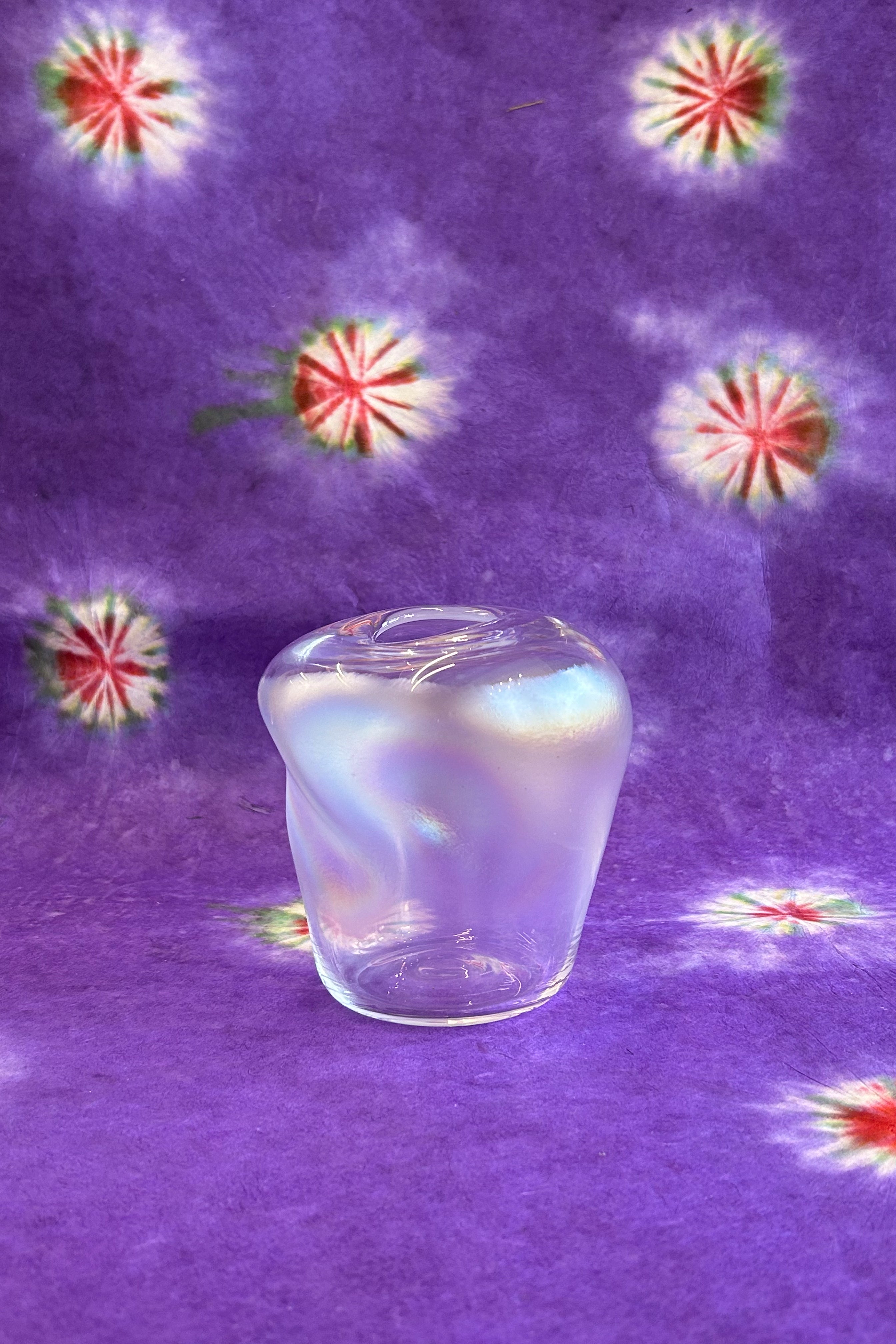 Small vase with expressive strokes of colour and pattern. Each of Sirius Glassworks' pieces are completely unique, their work bears a sense of strength and sincerity. Swirling like a mirage, their work is highly coveted.
