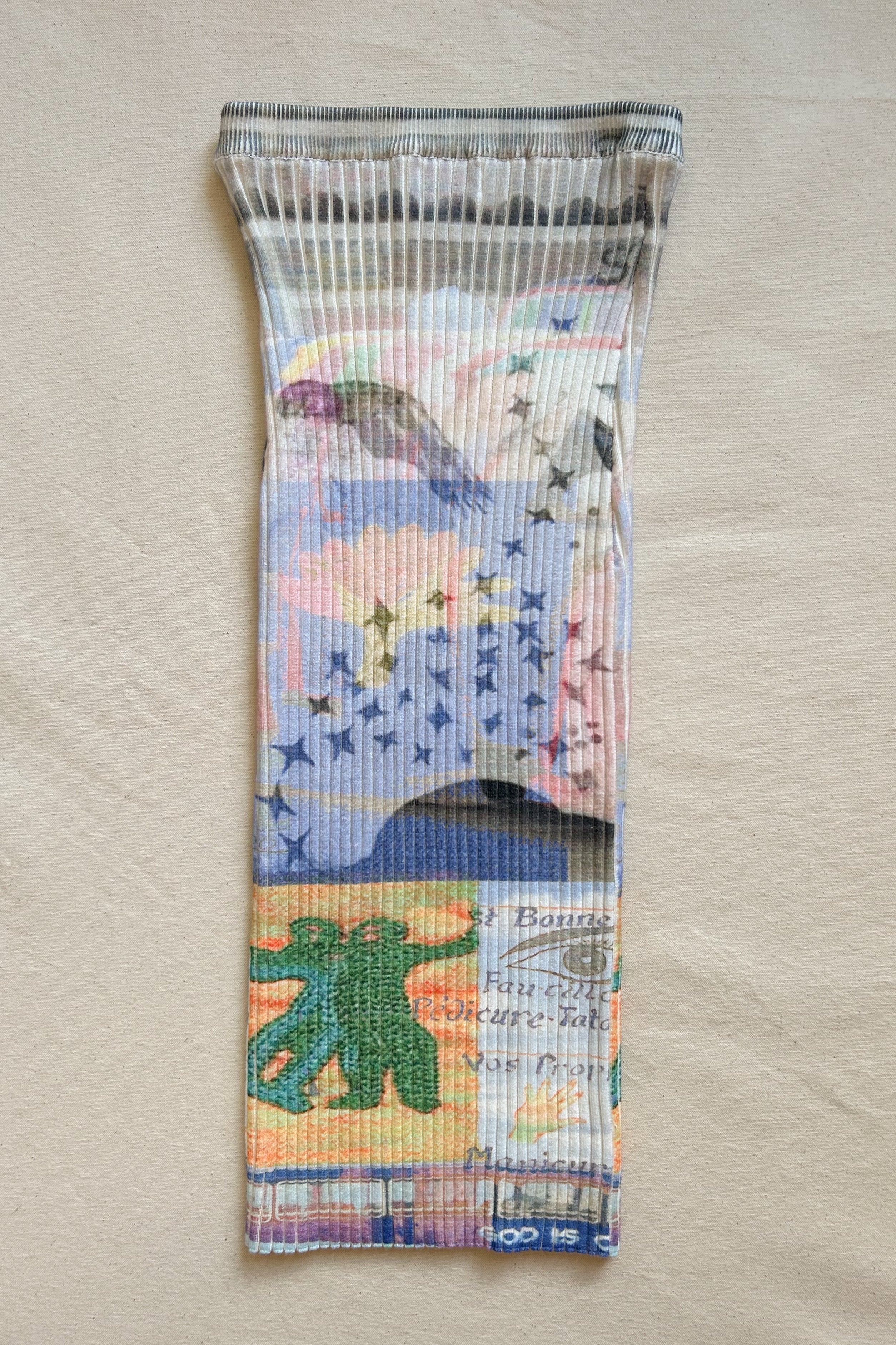 A collaboration between 100% SILK and knitwear brand Giu Giu featuring a print diary of 100% Silk's early textile experiments and imagery that defines the brand on iconic Giu Giu shapes.