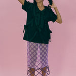 BORN IN ABIDJAN ON THE IVORY COAST, DESIGNER RYM BEYDOUN STUDIED AT CENTRAL SAINT MARTINS BUT WAS DRAWN BACK TO HER HOME COUNTRY. SUPER YAYA IS AN AFROCOSMIC TAKE ON THE WEST AFRICAN FASHION SHE GREW UP WITH. IN THE DESIGNER’S OWN WORDS “SUPER YAYA IS VERY SURREAL... IT’S A WORLD I CREATE IN-BETWEEN THINGS LIKE PAST AND FUTURE, WEST AND EAST.”