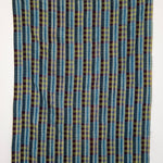 This cloth was woven in the Bondoukou region of Côte D’Ivoire. Due to its border with Ghana, the textiles from Bondoukou combine affinities with main Ghanaian “kente” styles -  such as the use of blue and white thread - with other aspects closer to Baoulé and Gouro textiles from Central Côte D’Ivoire.