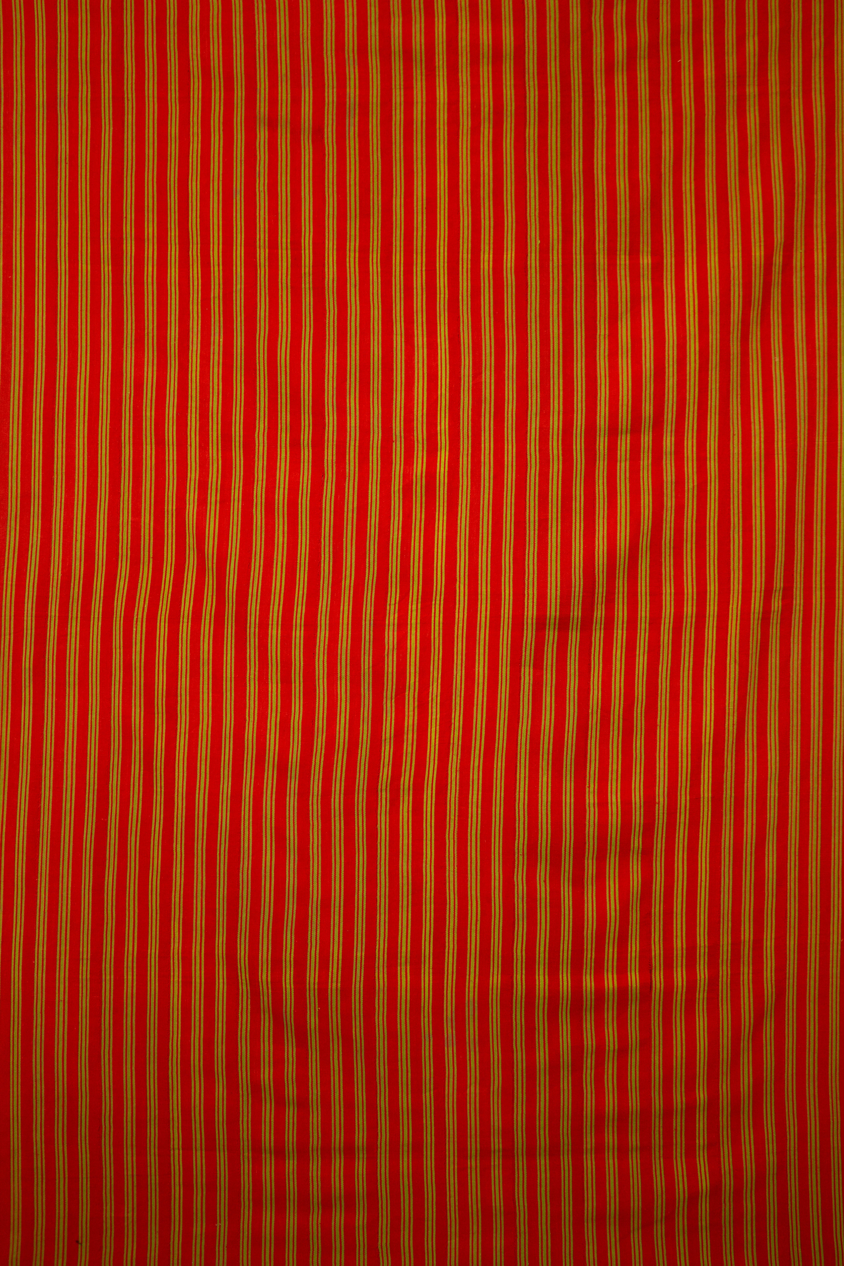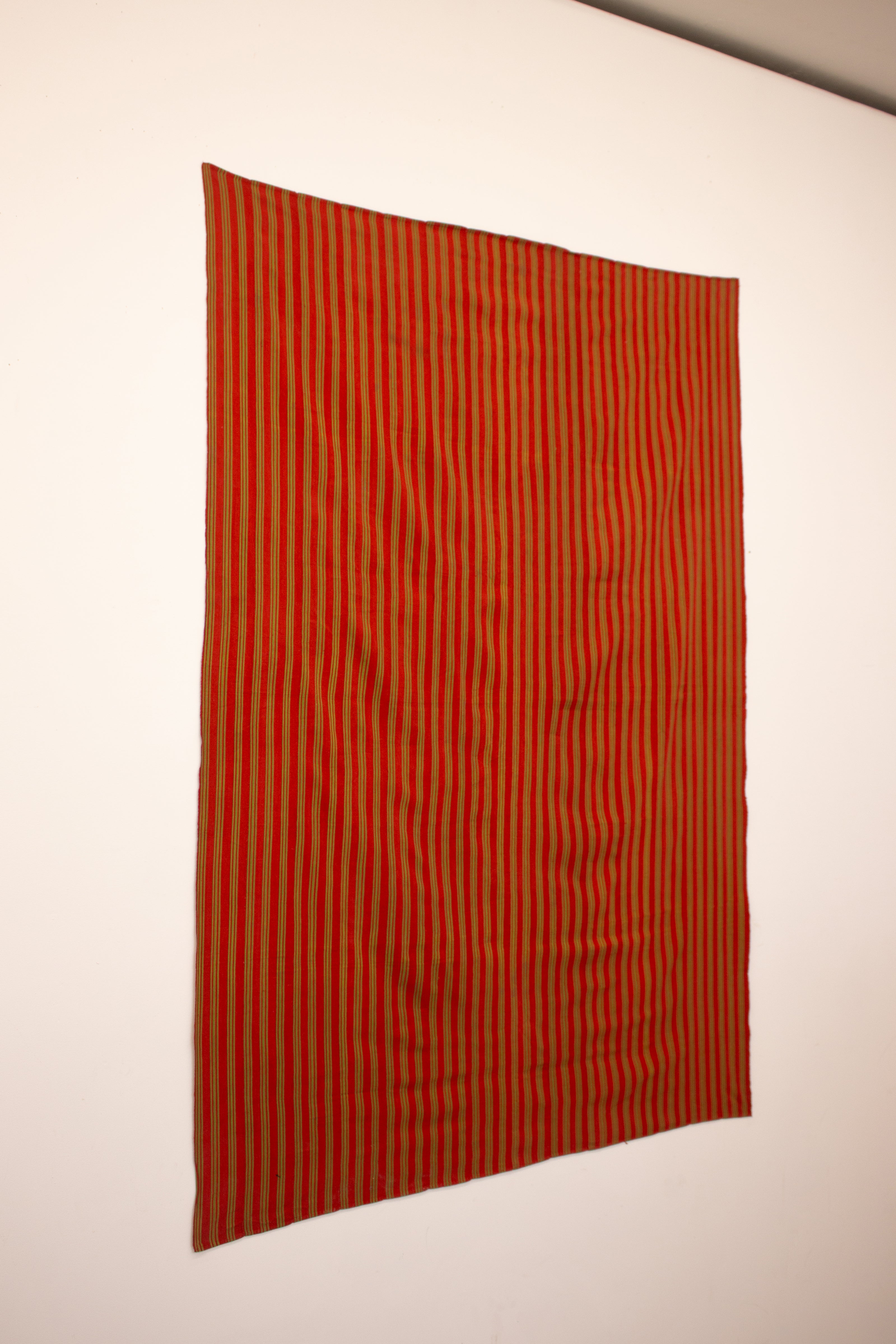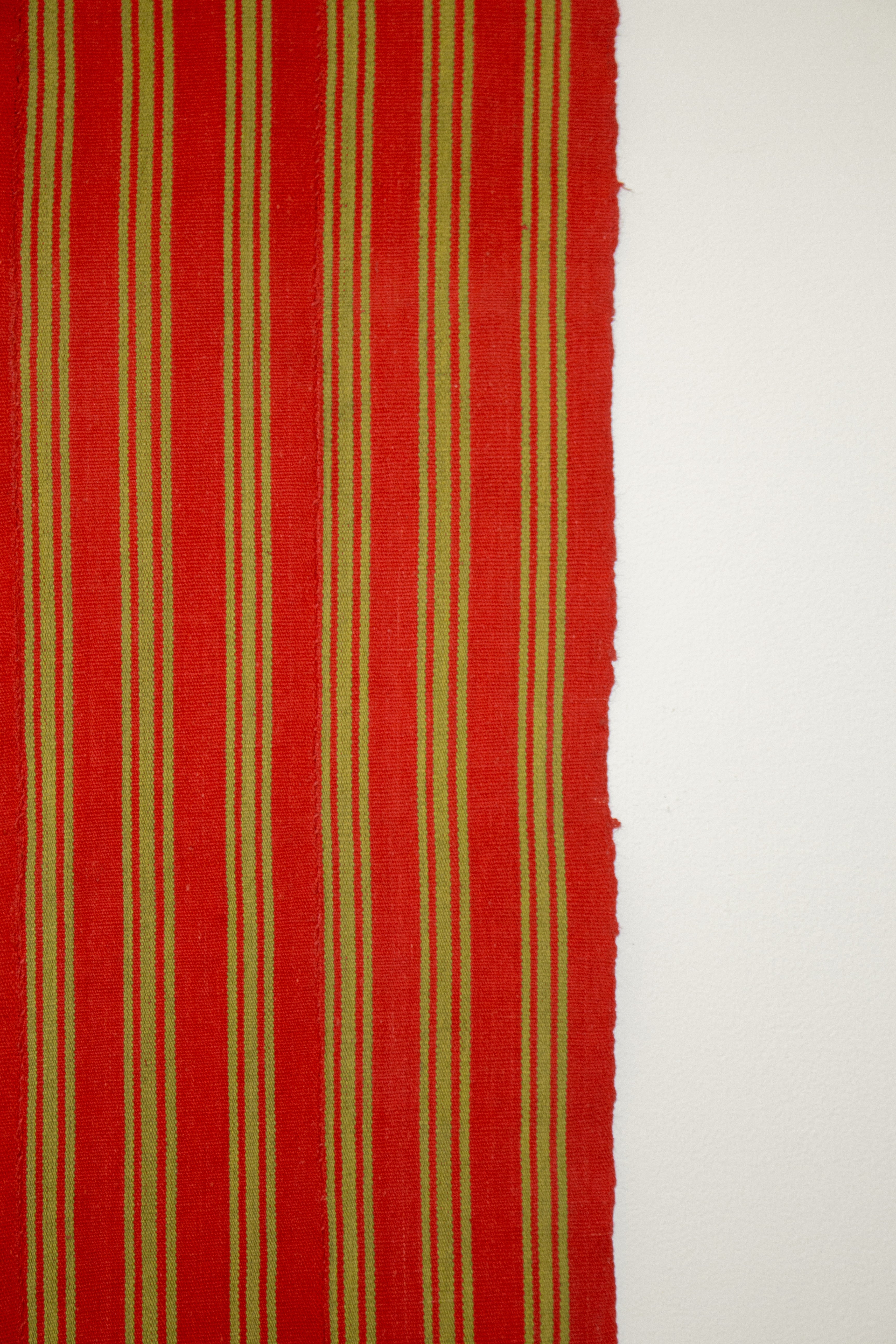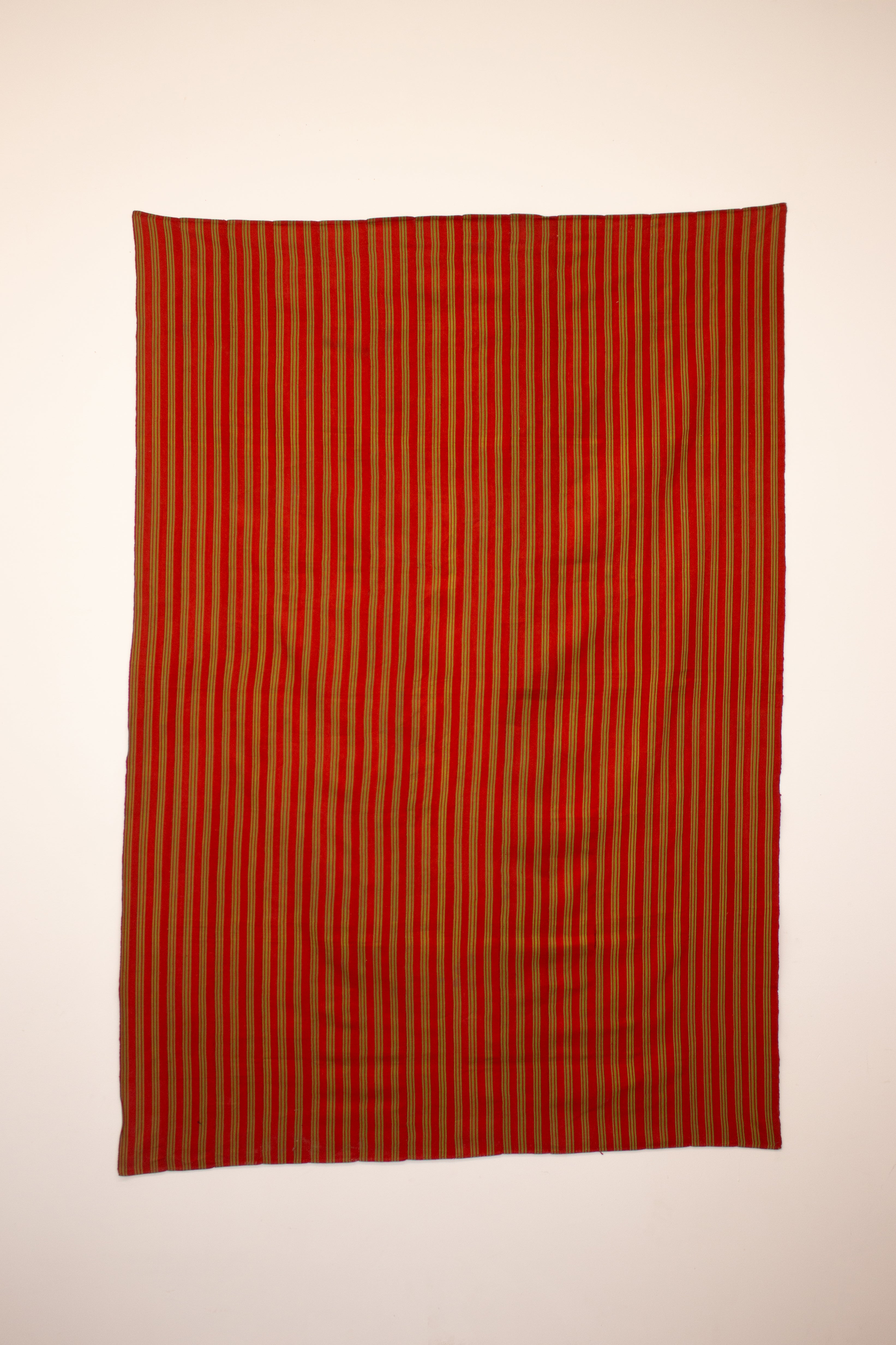 Subtle and sweet vintage handwoven cloth in red with alternating vertical stripes in green throughout.