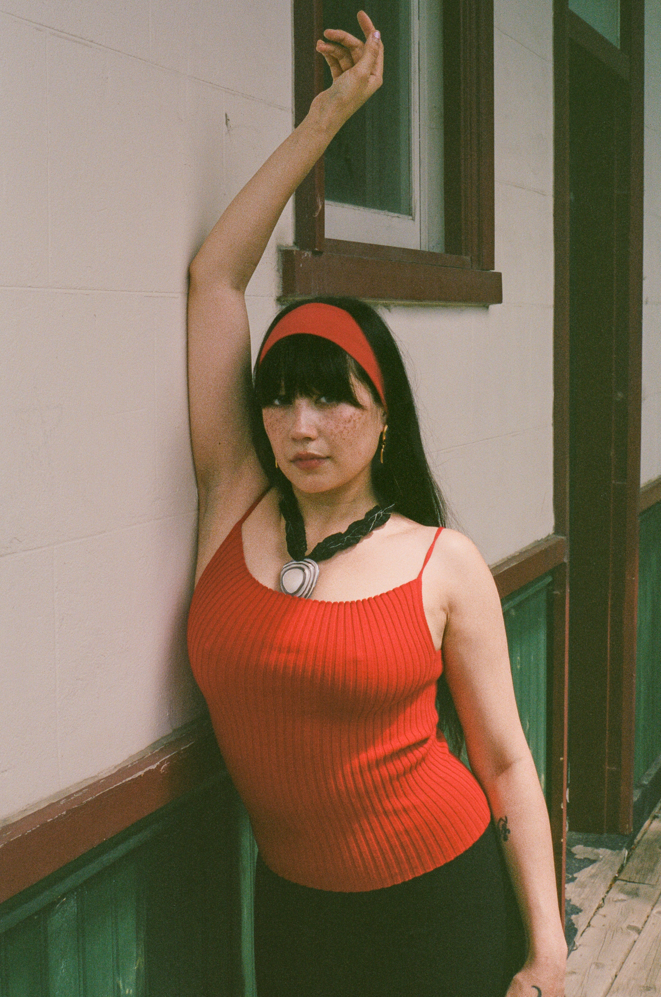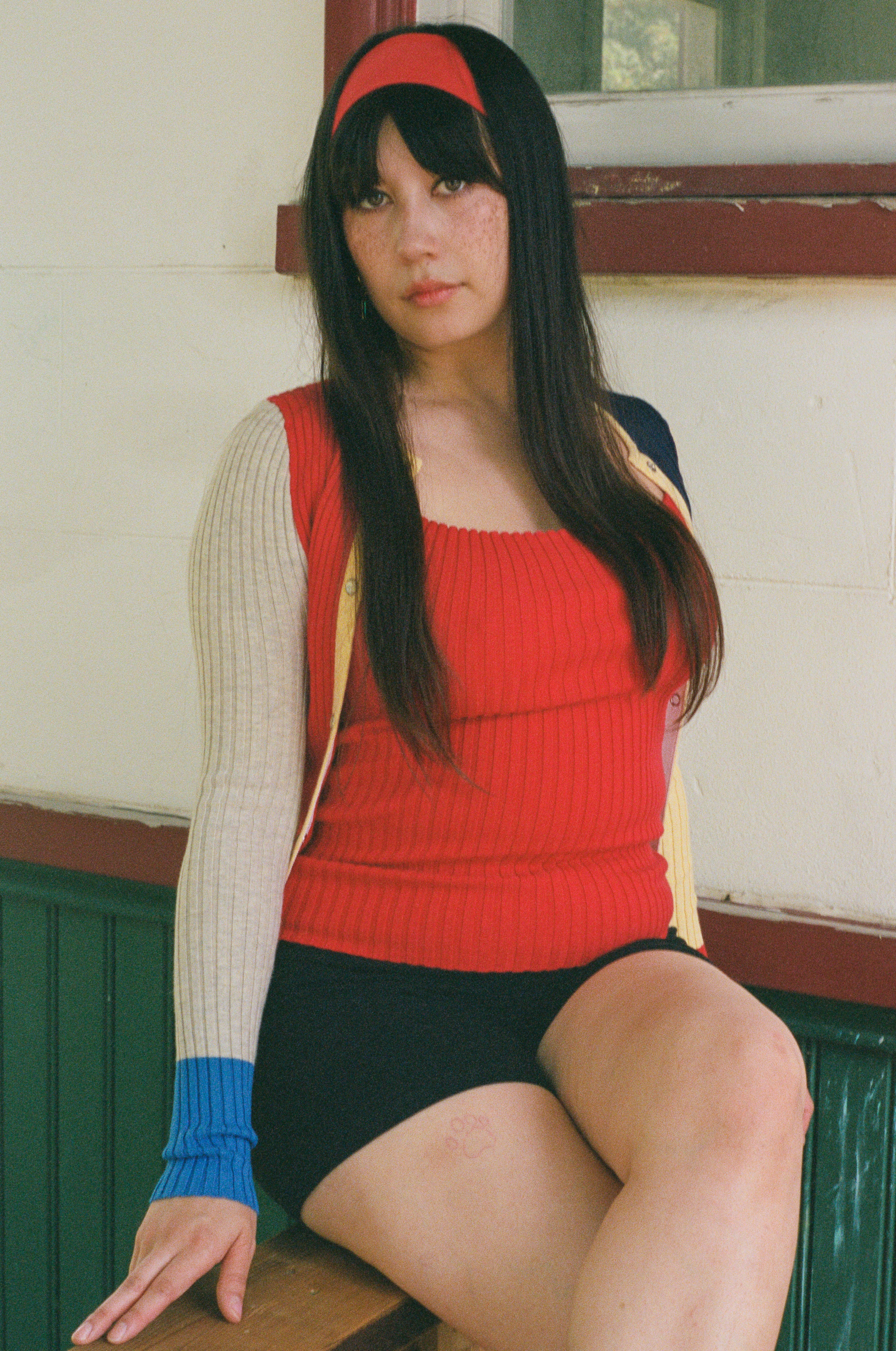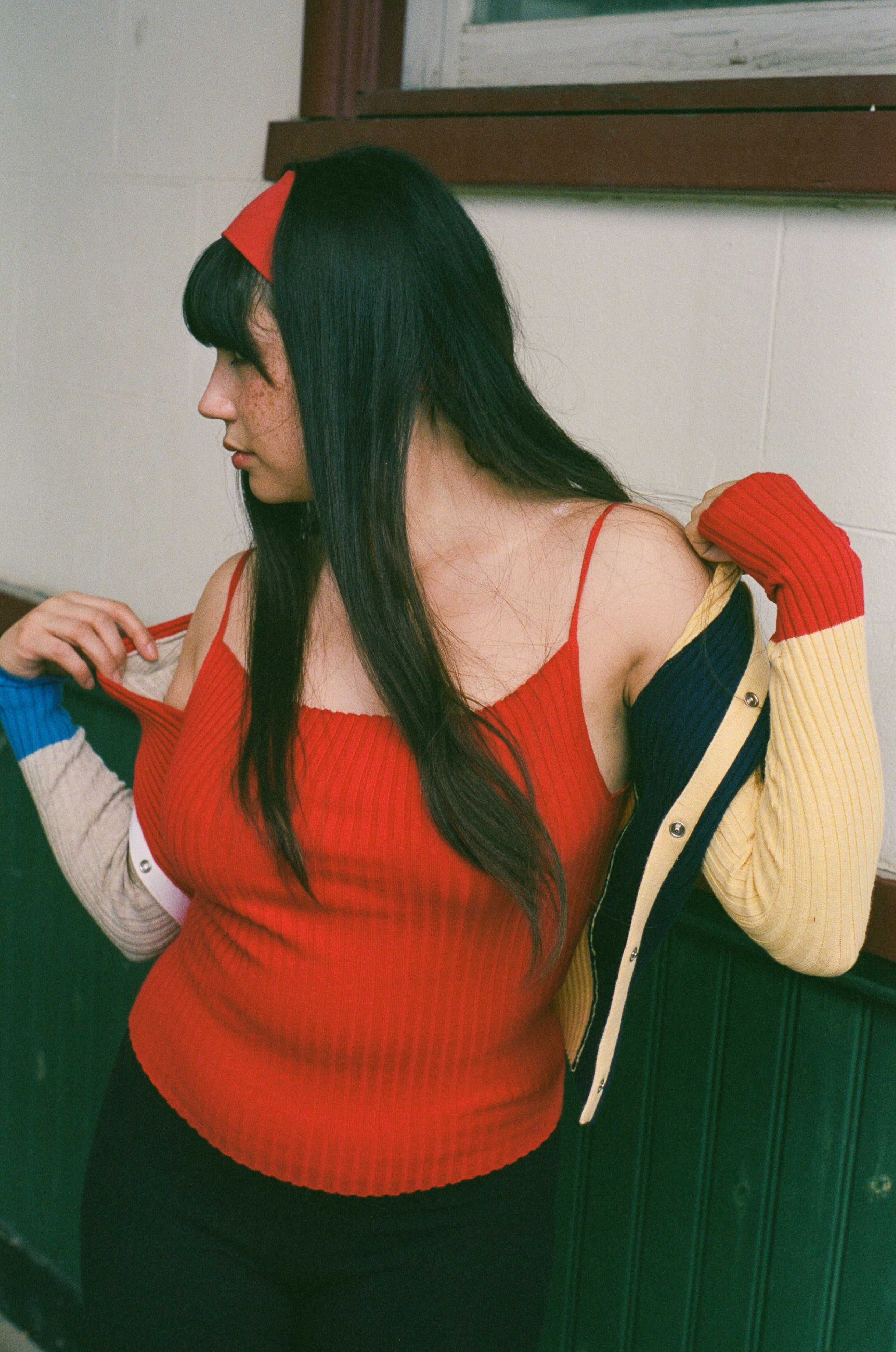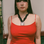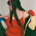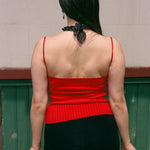 Spaghetti strap camisole top with a square neckline. Features a deep rib that comfortably conforms to your body. This piece will mold over your form and stretch to fit exactly your shape, while hugging you tightly smoothing over any lines. Featured in pomodoro red.