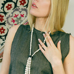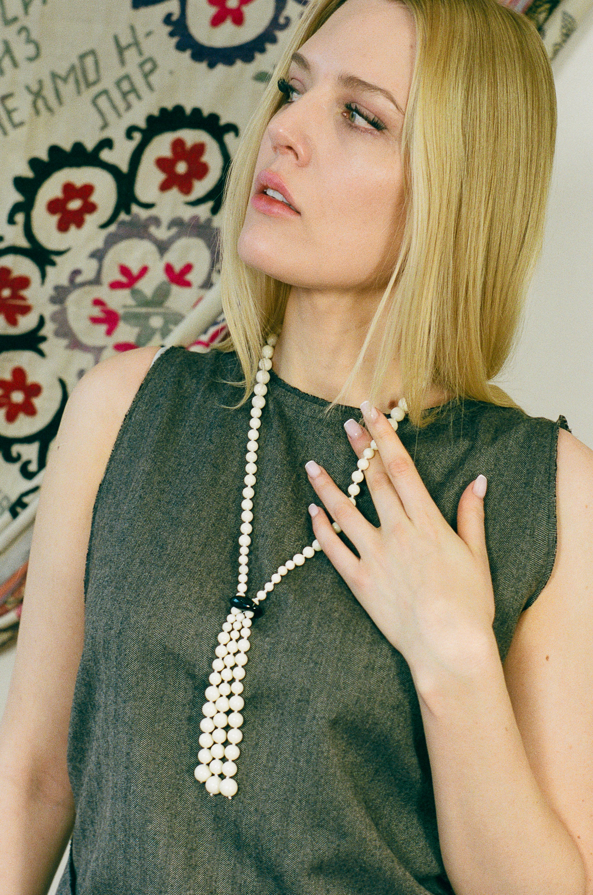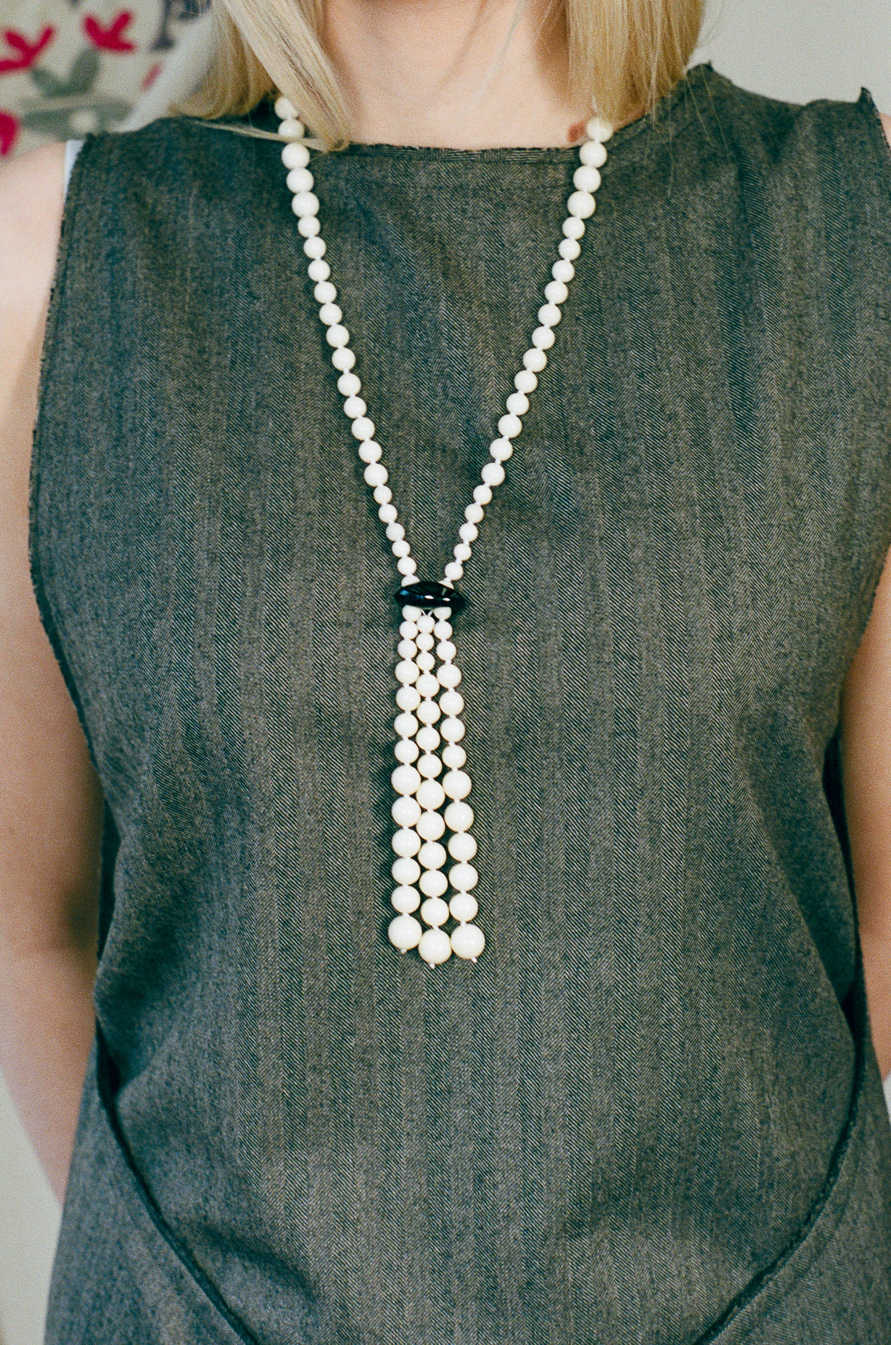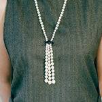 The Pepita Necklace is handcrafted in Mosquito's atelier from jade semi precious gemstone beads and a calabrote made from onyx. Strung with silk thread, each bead is individually knotted by hand — a traditional technique that enhances both the durability and fluidity of the piece. A sterling silver charm finished with a 3-micron 18k gold bath completes the design. Pullover style through your head adorning the neck. Made slowly and intentionally, on average each necklace spends around three hours during the crafting process before it is ready to be yours. Each necklace is unique — its subtle variations and imperfections are a testament to its artisanal, one of a kind nature.