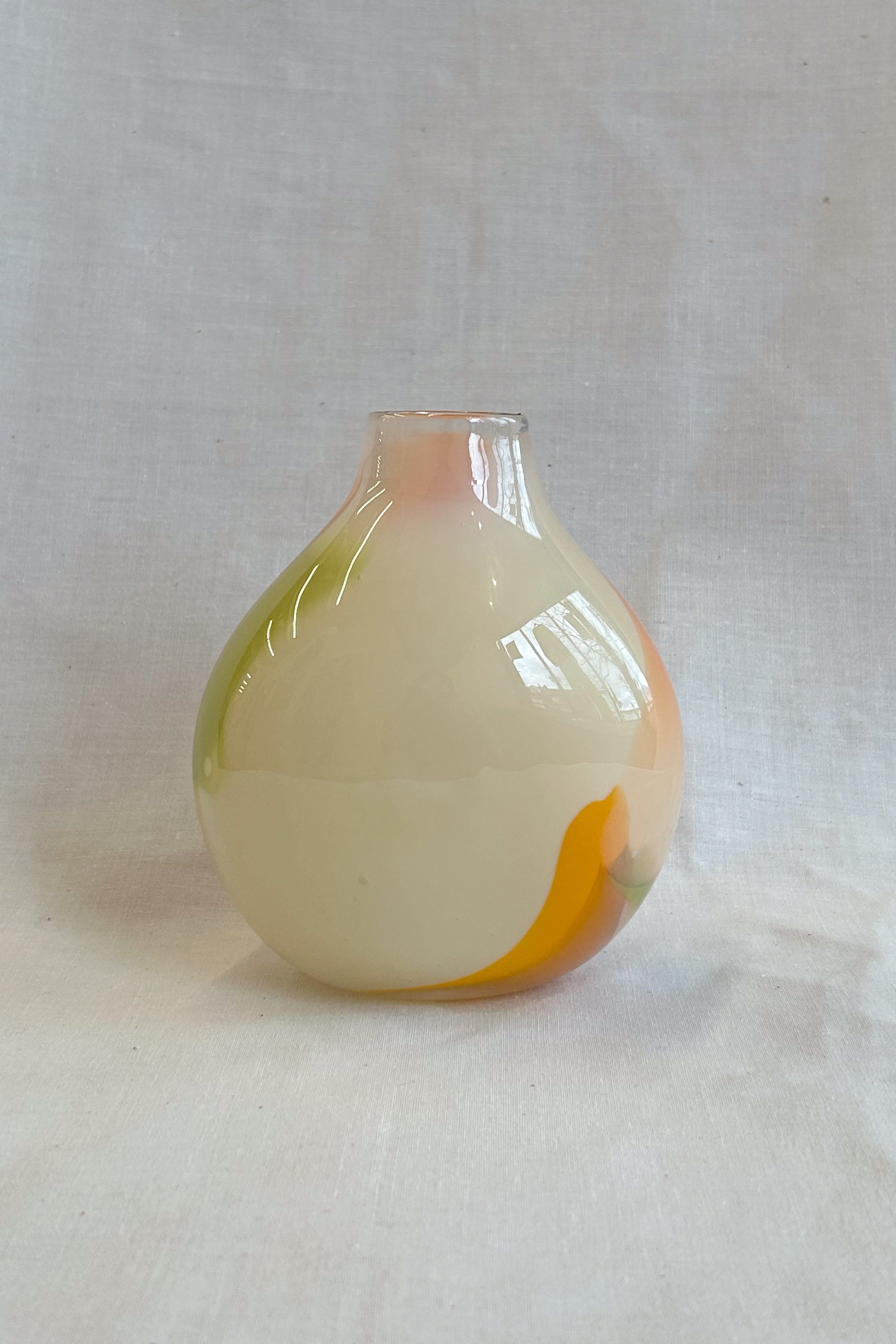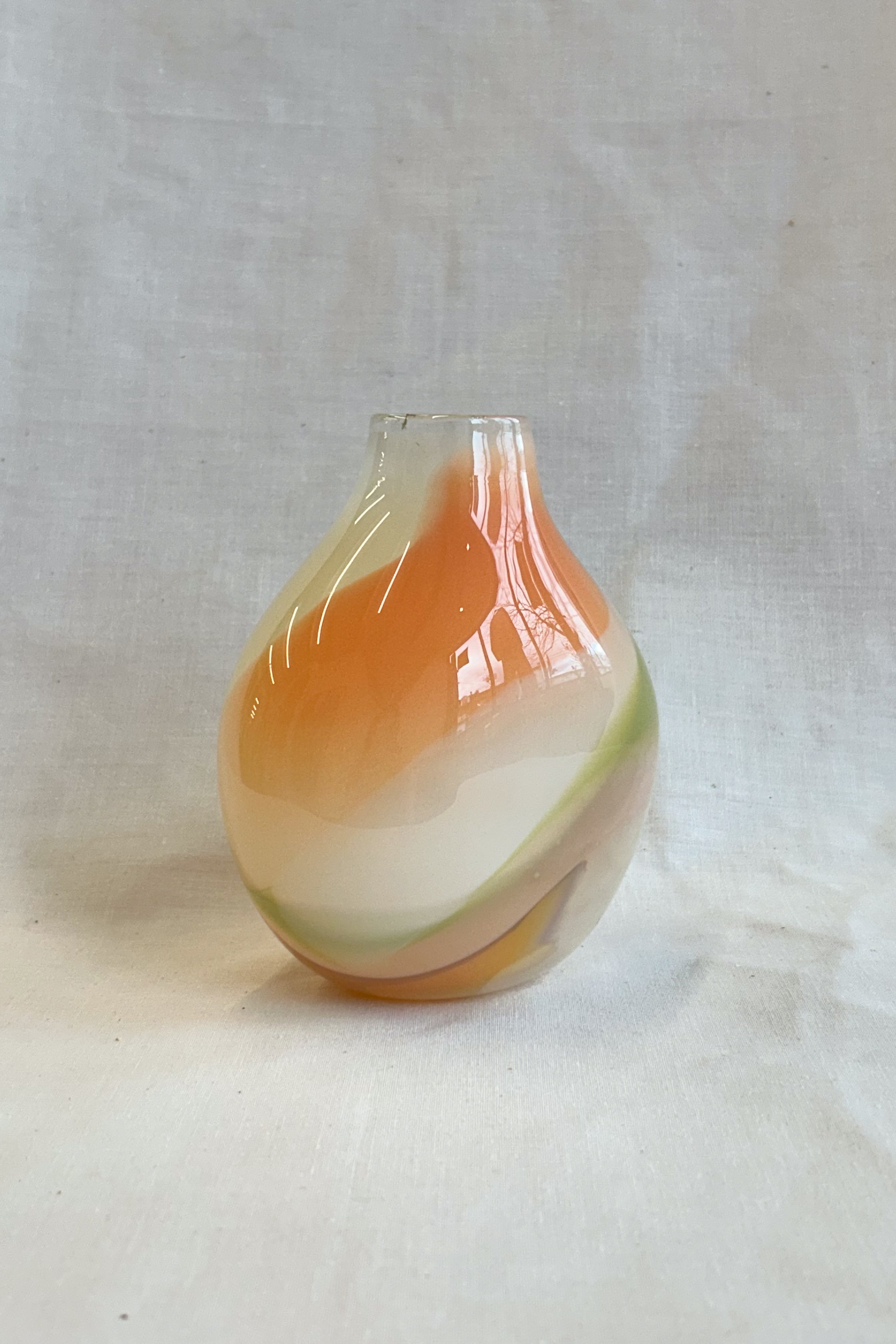 Small vase with expressive strokes of iridescent colour and pattern. Each of Sirius Glassworks' pieces are completely unique, their work bears a sense of strength and sincerity. Swirling like a mirage, their work is highly coveted.