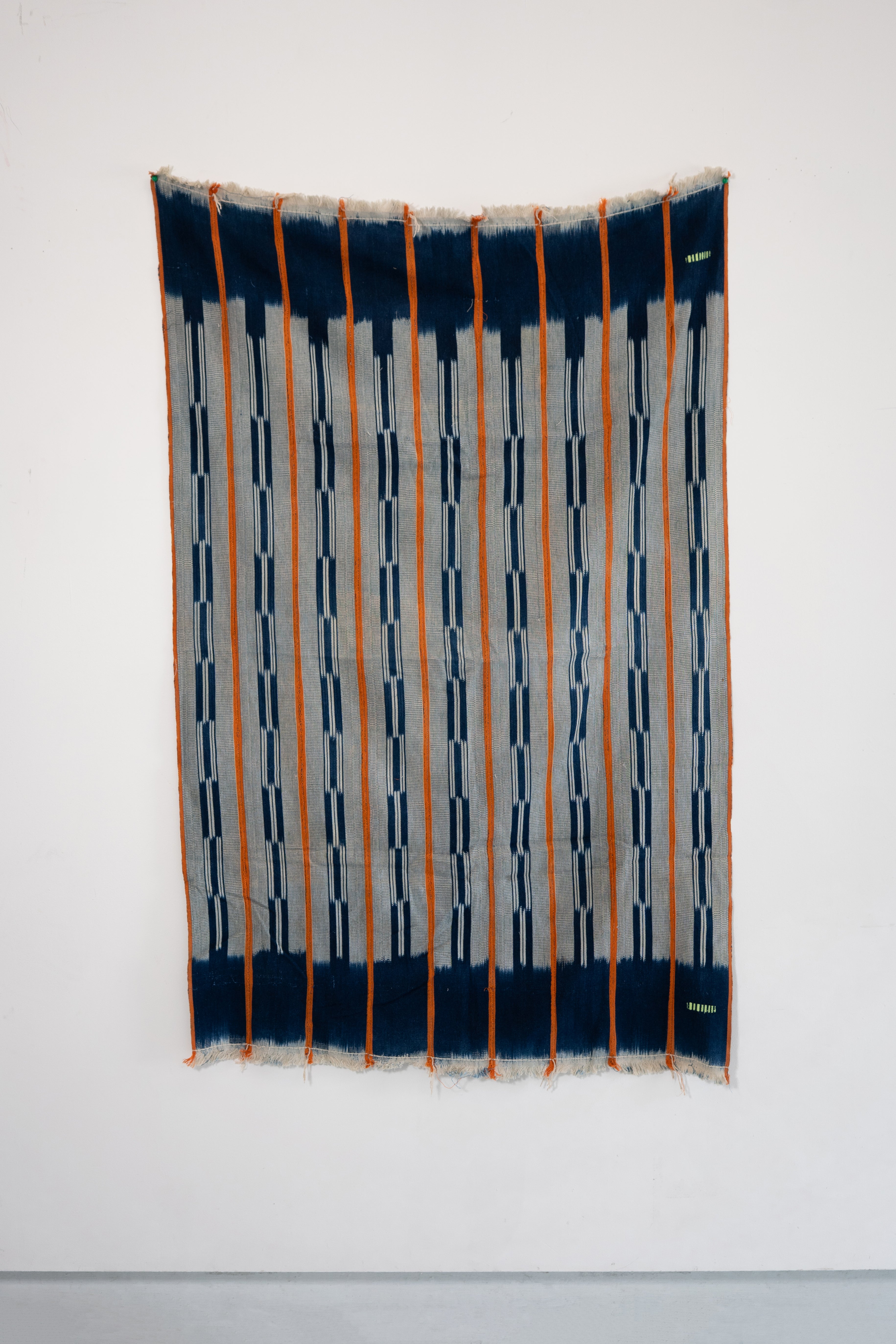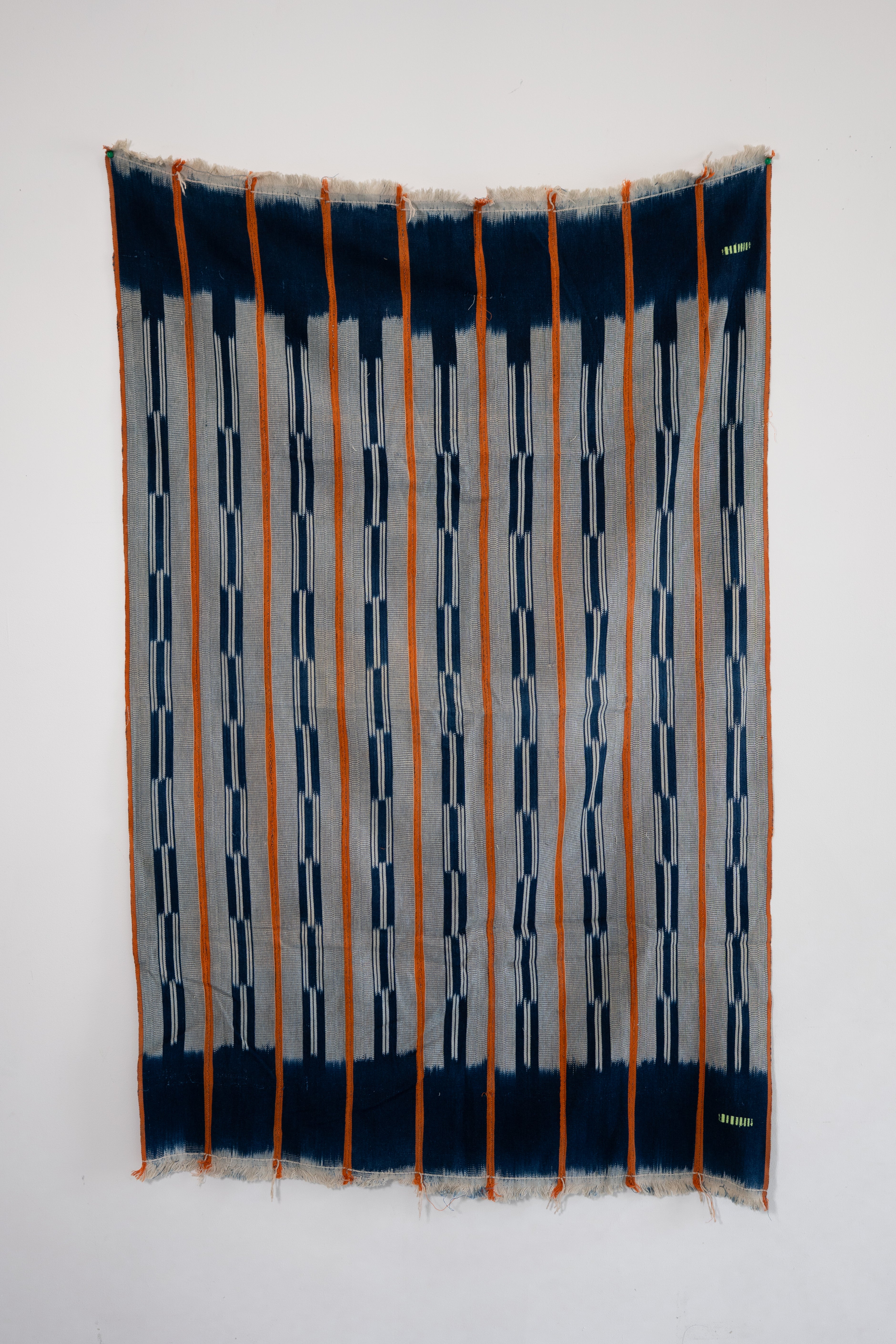 VINTAGE BALOUÉ CLOTH IN DARK INDIGO/ORANGE IKAT
