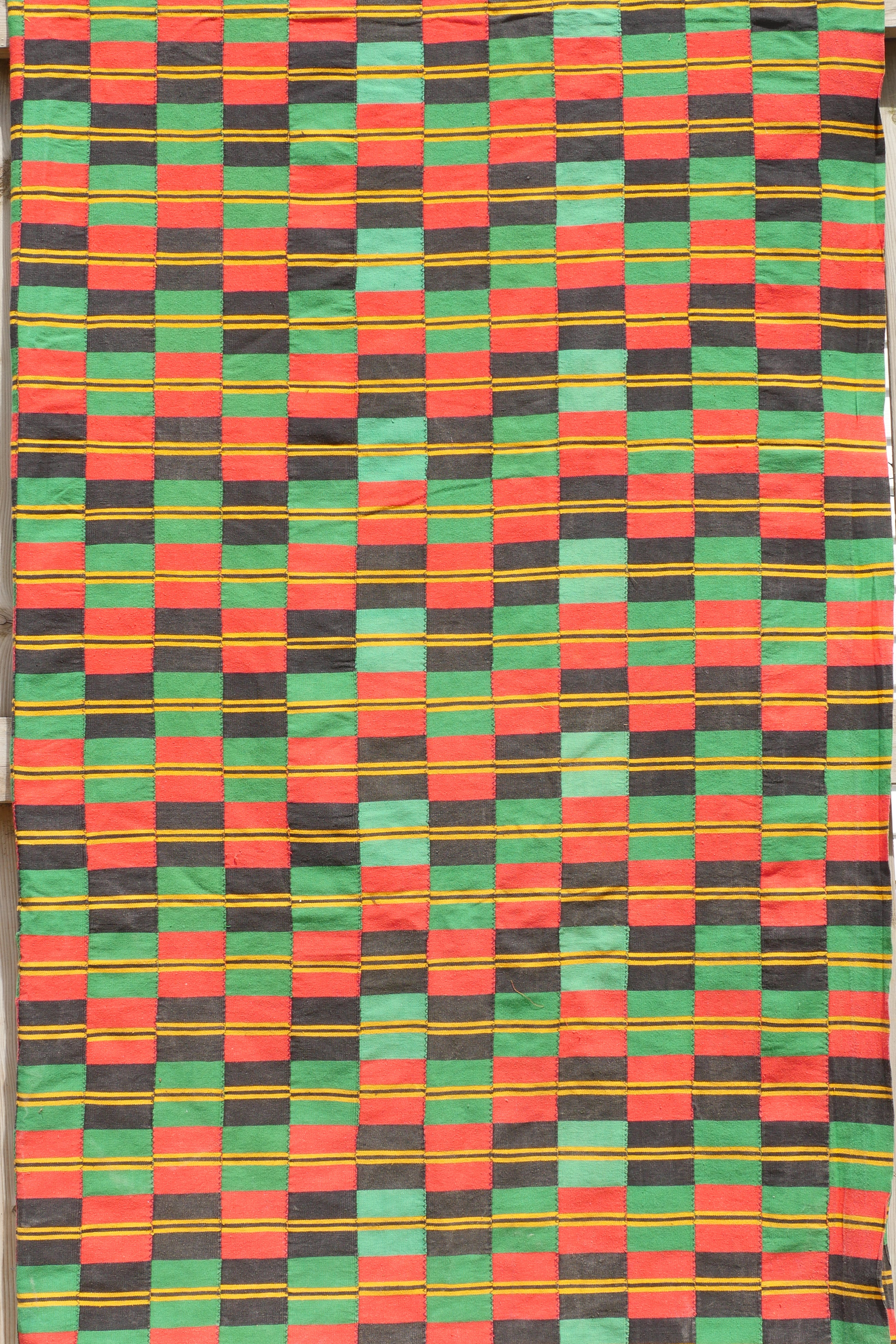 Large Checkered Ewe Kente Cloth in Red/Black/Green/Yellow