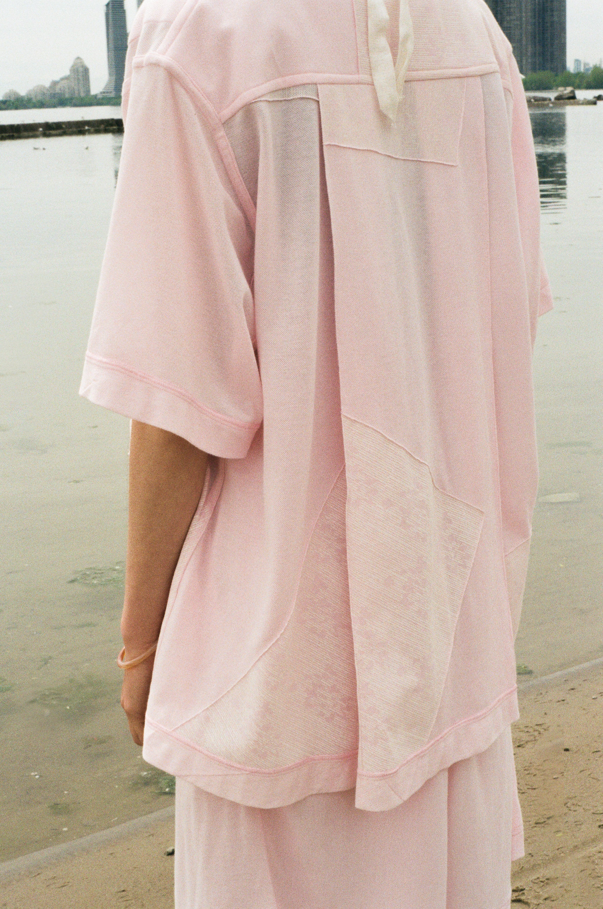 pink jersey pique roomy bowling tie up shirt