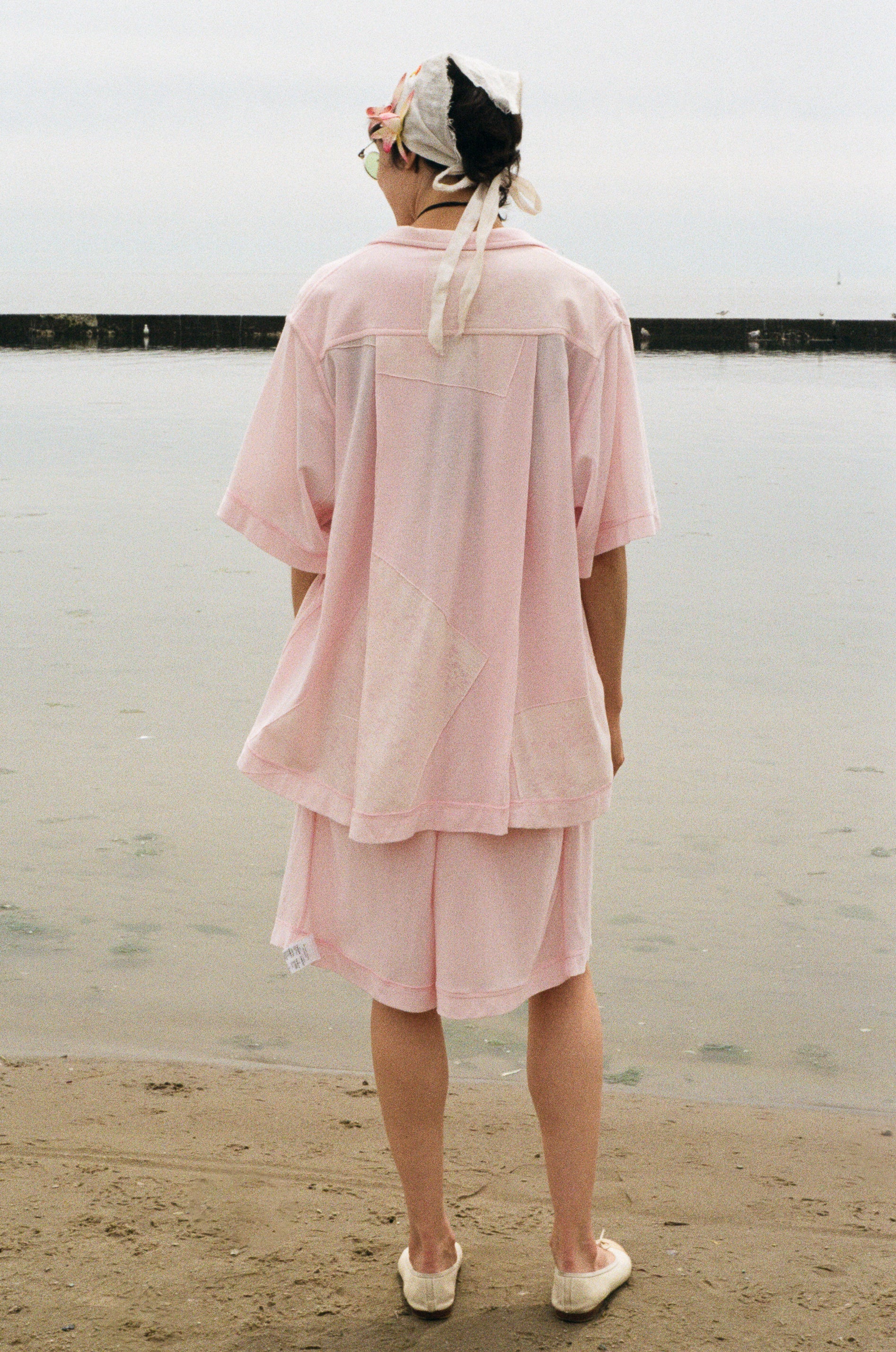 The Bowlo is a revisit of the bowling shirt that CJC loves, airy and easy with a structured feel enough like a polo but rather ties vs button down. Roomy with generous panels on both side seams, topped with a bib finish on the front so it can completely be worn without anything under. Perfect as a layer or on its own. Featured in rose pink with white silk screen overlay, reversible inside out, back or front.