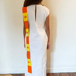 The material for the soleil dress is made from handloomed cotton traditional to the Volta region of Ghana. Woven in 3" strips and joined by master weaver Bob Dennis Ahiagble for 100% SILK. Since 2003, Bob has been recognized by UNESCO as one of the only living master Ewe kente weavers, championing kente as an intangible heritage product.