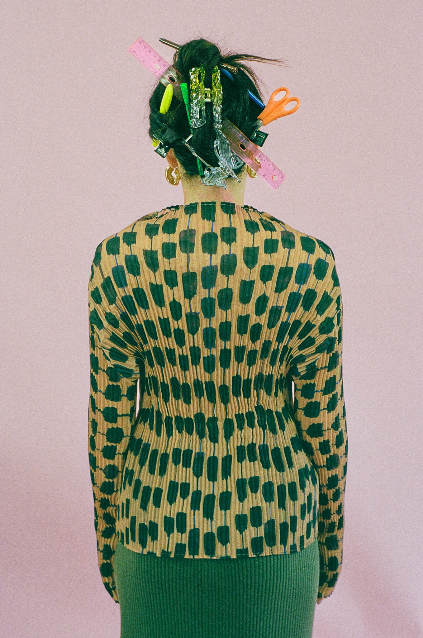 Jenn wears with the Juhi Shirt, Lee Top in Mia, and Nonna Wrap in Abyss.