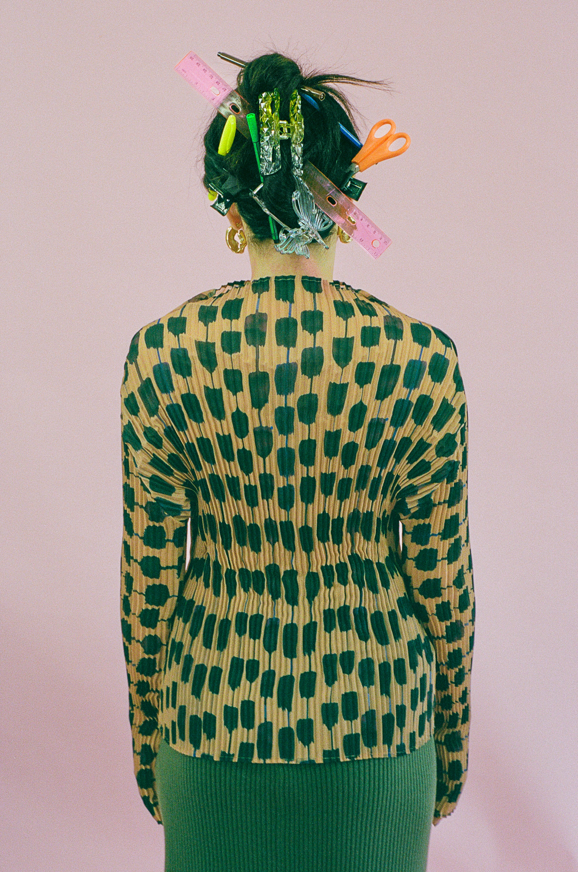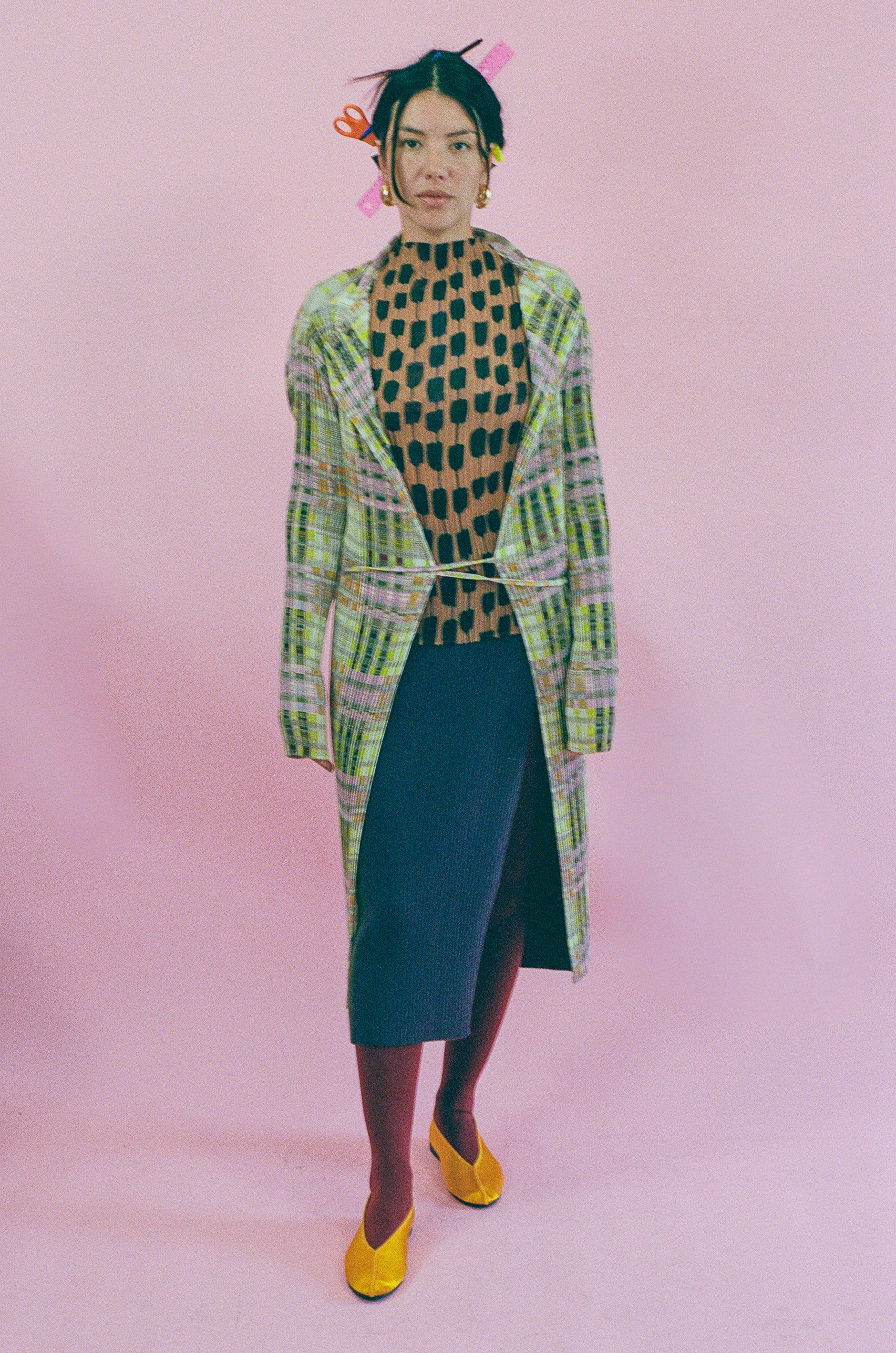 Through her eponymous brand, Swedish designer Julia Heuer creates pieces that are instantly recognizable by their handmade plissé and vibrant prints. Heuer’s careful process sees a combination of illustrated stories being directly applied to raw materials and the Japanese tie-dyeing pleating technique of Arashi Shibori. The garments’ delicate pleating and loose but elegant cut create a playful sense of movement and unique silhouette.