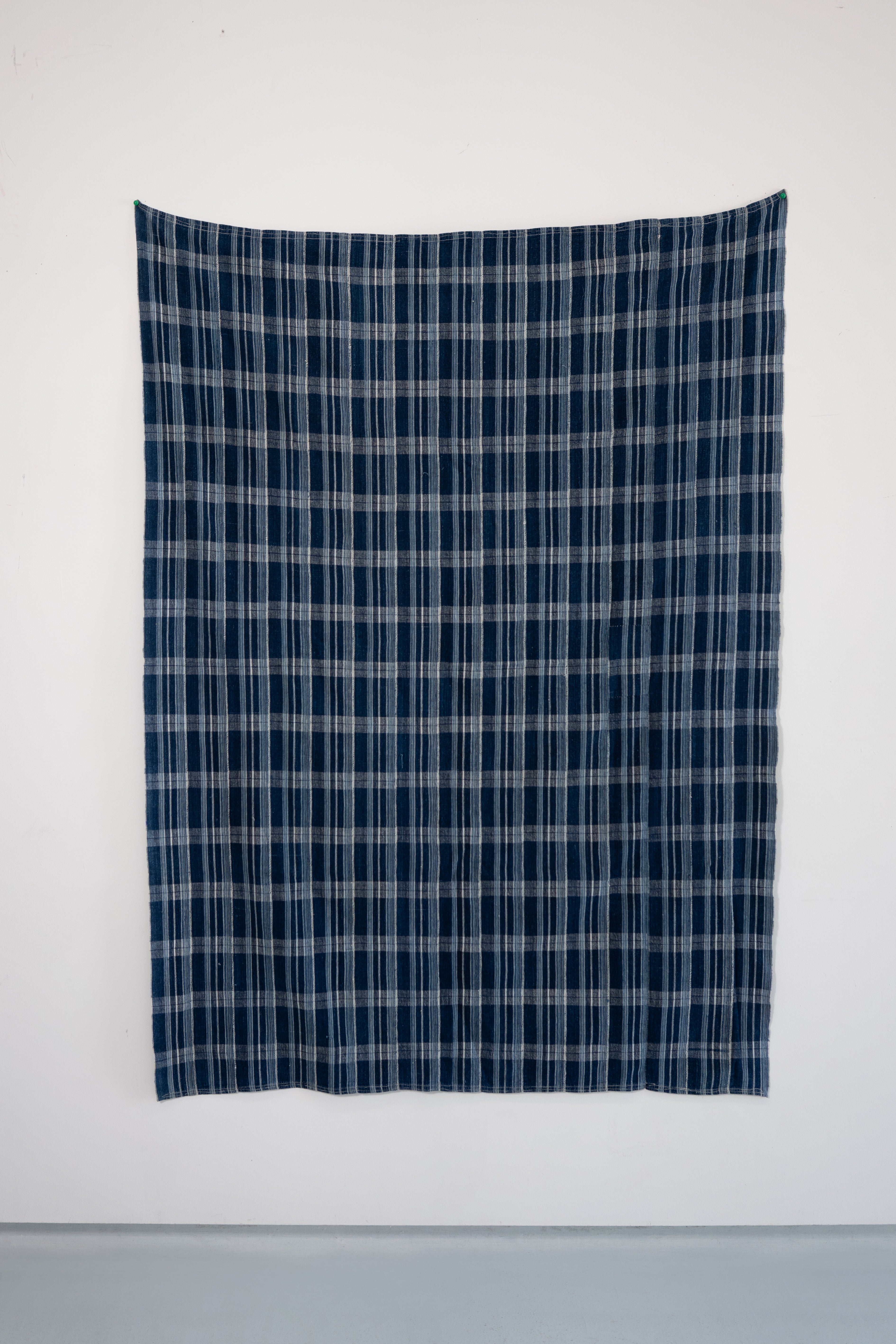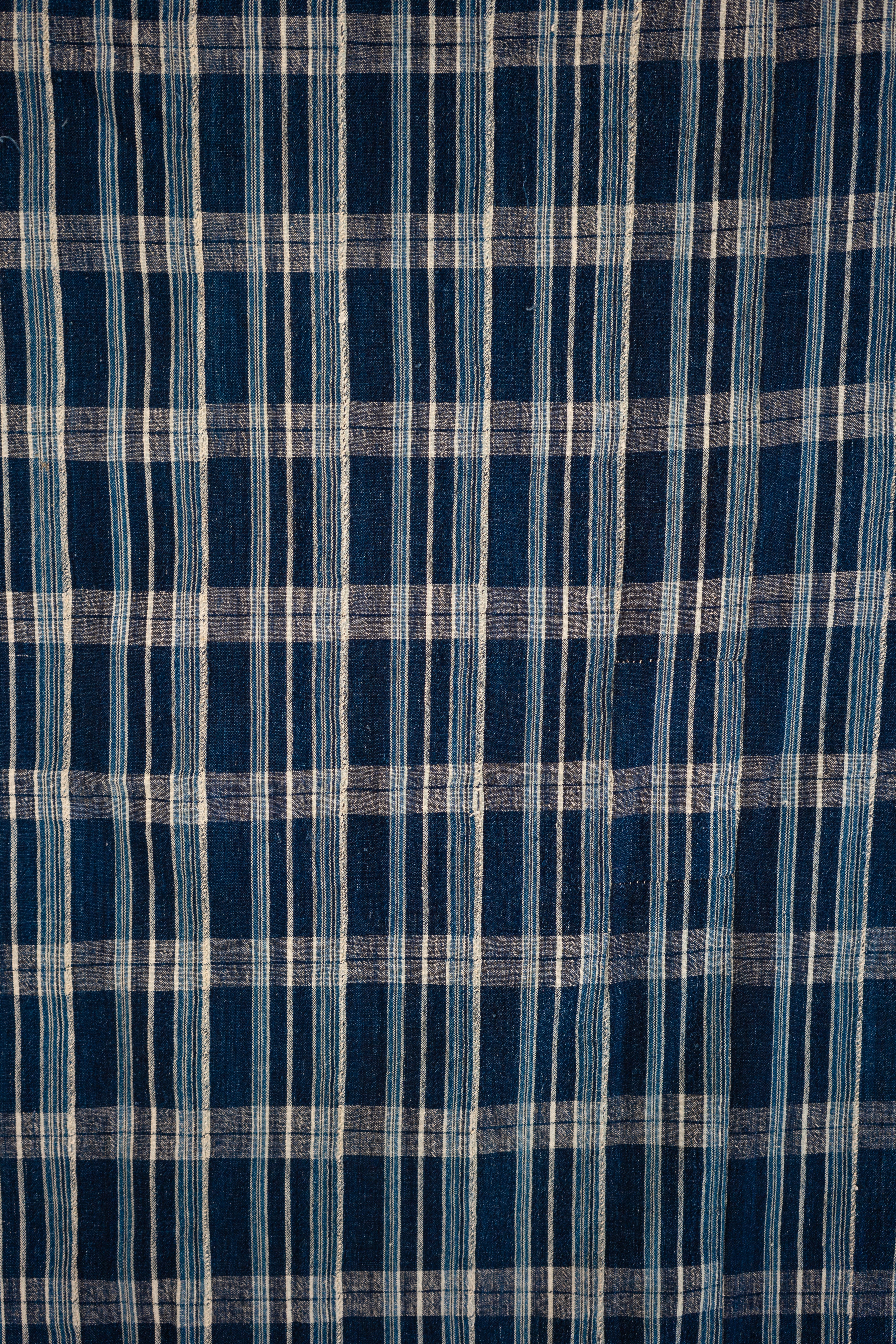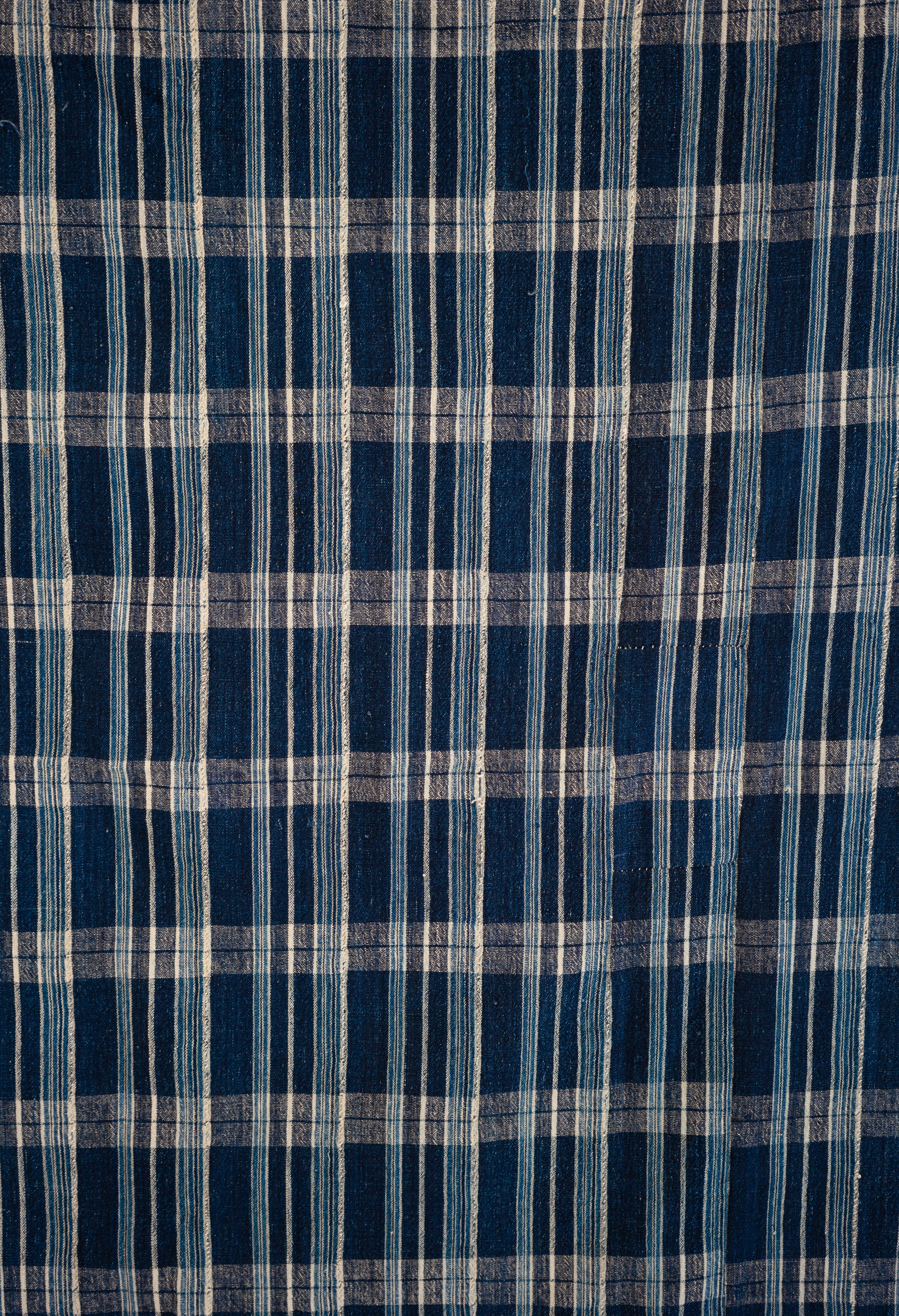 A very special checked cloth, handwoven in narrow strips from soft textured cotton thread dyed with indigo in various shades of blue. Stitched together by hand.