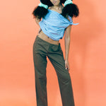 Trinity is 5'7 and a size extra small/small, and wears size small with the Tie Pants in Chocolate, Carnation Scrunchie in Ice Mint, and Parang Bakya Max in Perya.